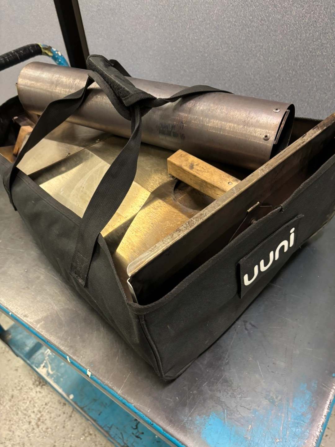 Used Ooni portable pizza oven. Includes carrying bag and accessories. Stainless steel construction.
