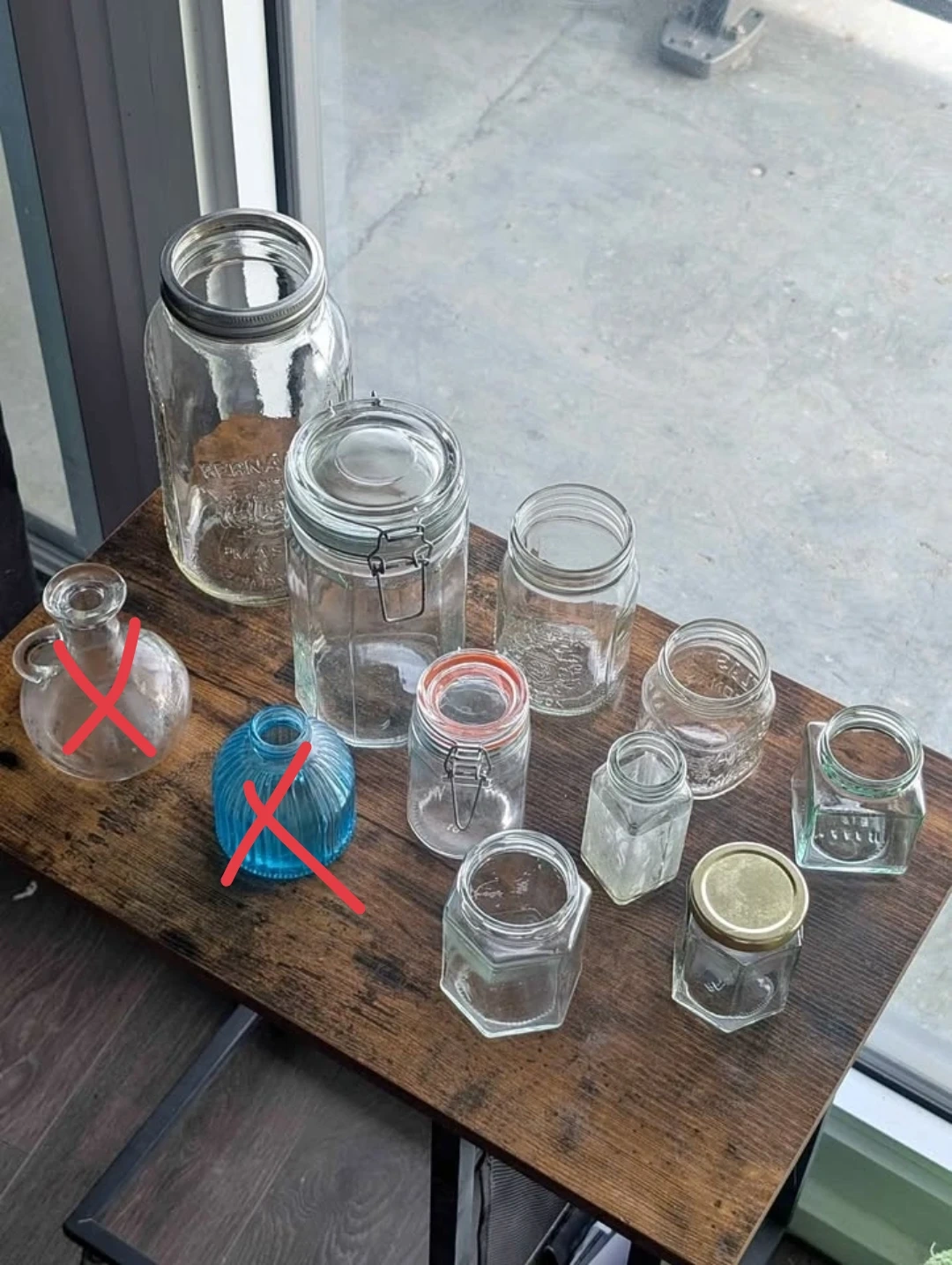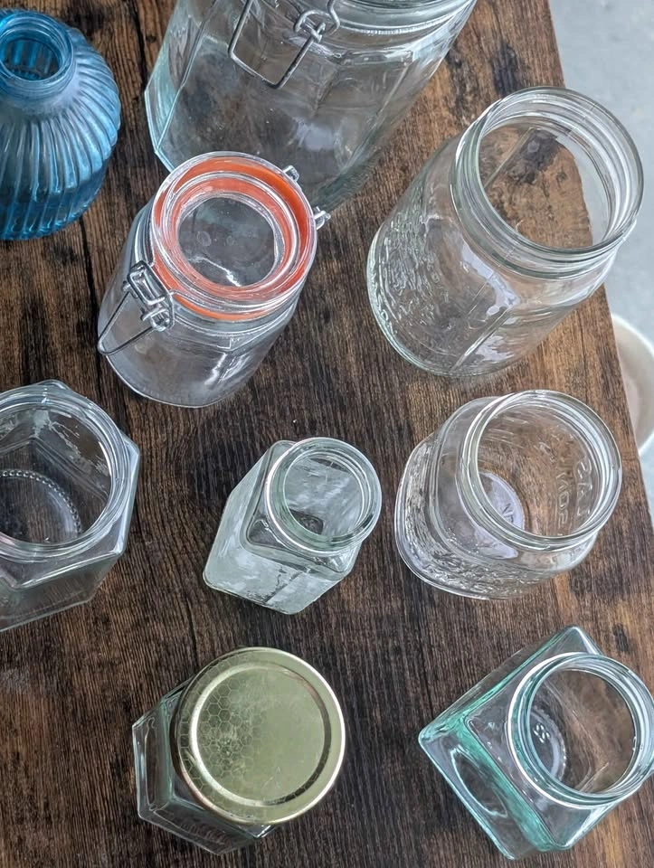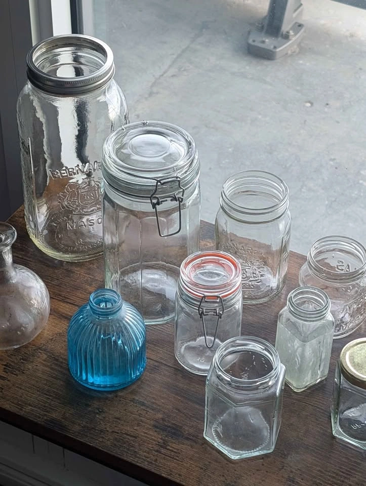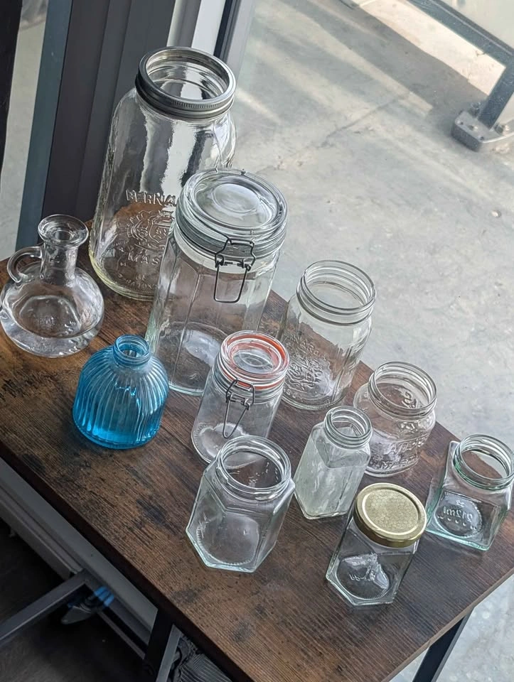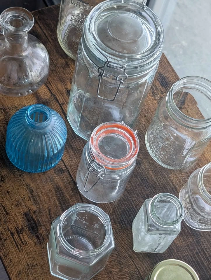 I have a large collection of jars & bottles that I use for plant cuttings, and I am looking to downsize my collection. Jars are As Is.