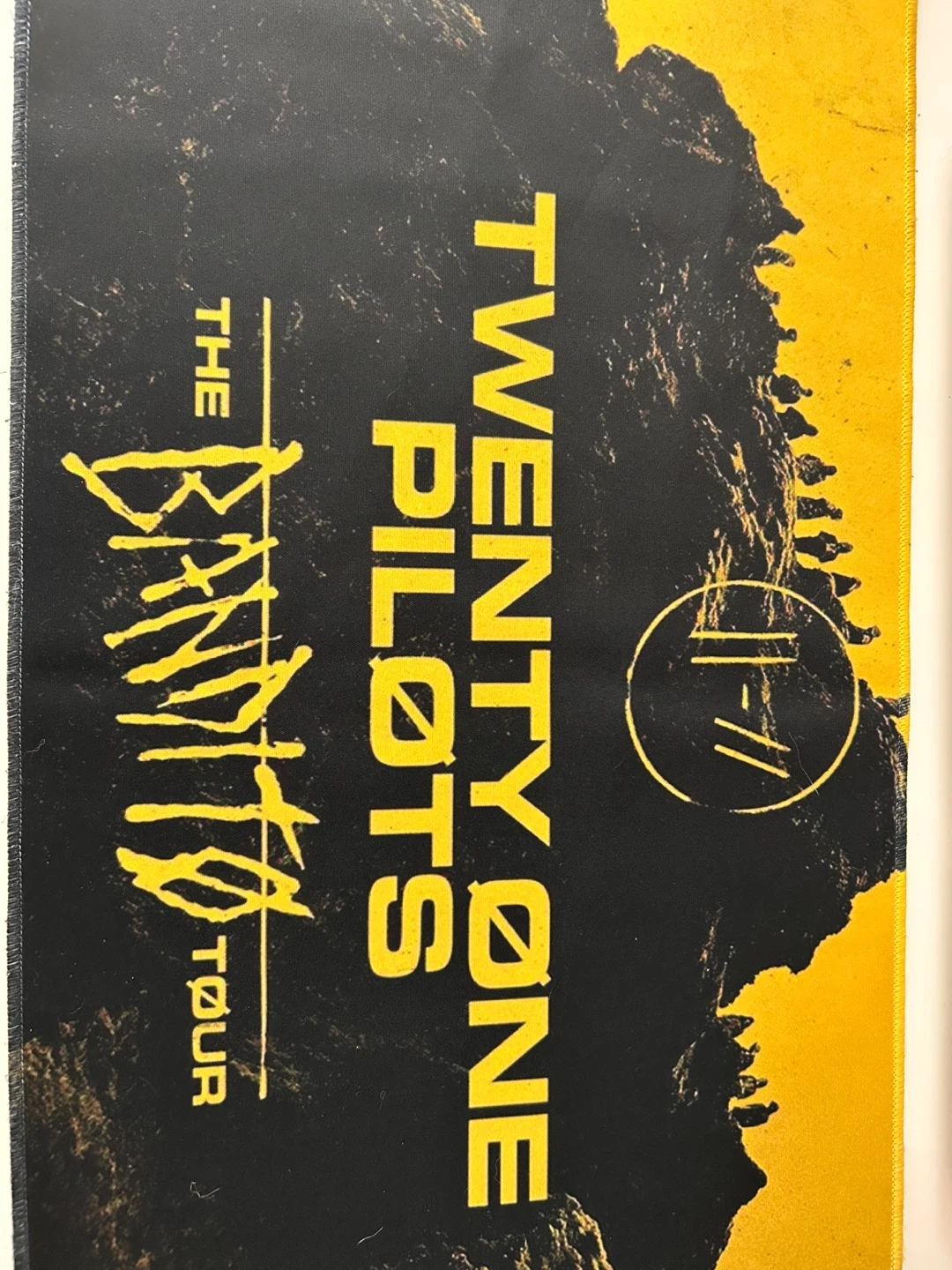 Twenty One Pilots "The Bandito Tour". Featuring the iconic Trench-era yellow and black aesthetic with the Bandito mountain silhouette, this is a must-have for any member of the Clique.
