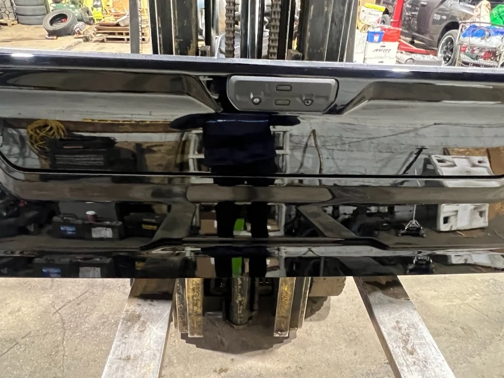 Selling a black GMC Sierra MultiPro tailgate. It's in good condition and ready to be installed on your truck. The tailgate measures approximately 23 inches in height.