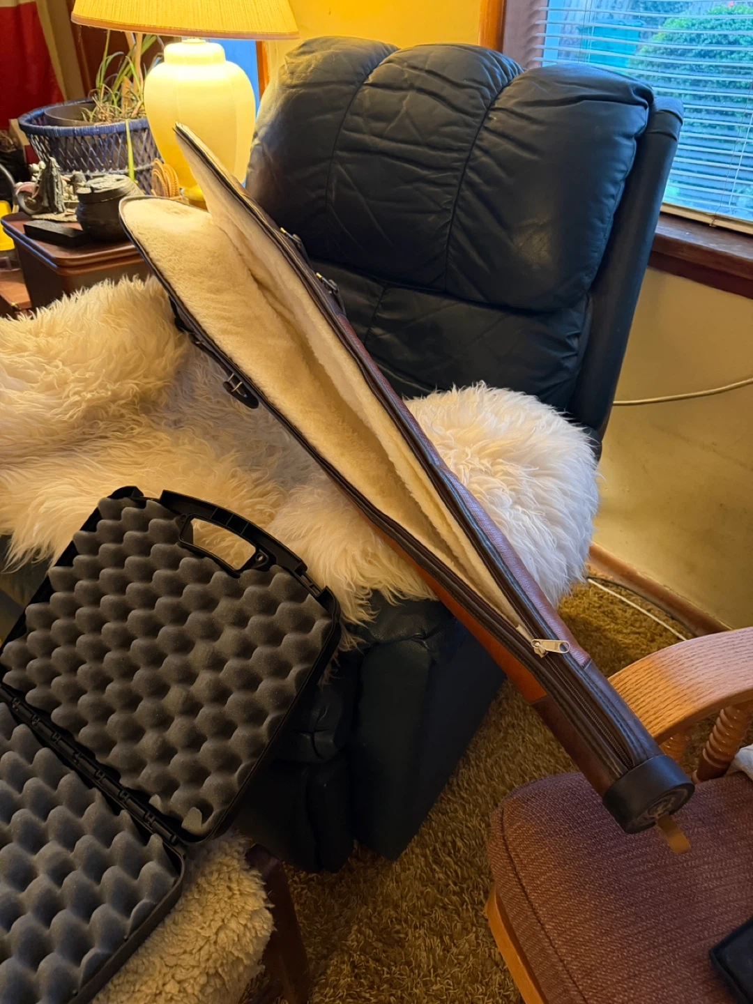 Leather holster $50 ($217) new. Nylon holster $15. 7 large targets $5. sheepskin lined rifle case $50. Best ear protectors $50 with pouch $10. Hard foam egg shell carrying case $15. All together worth $292.