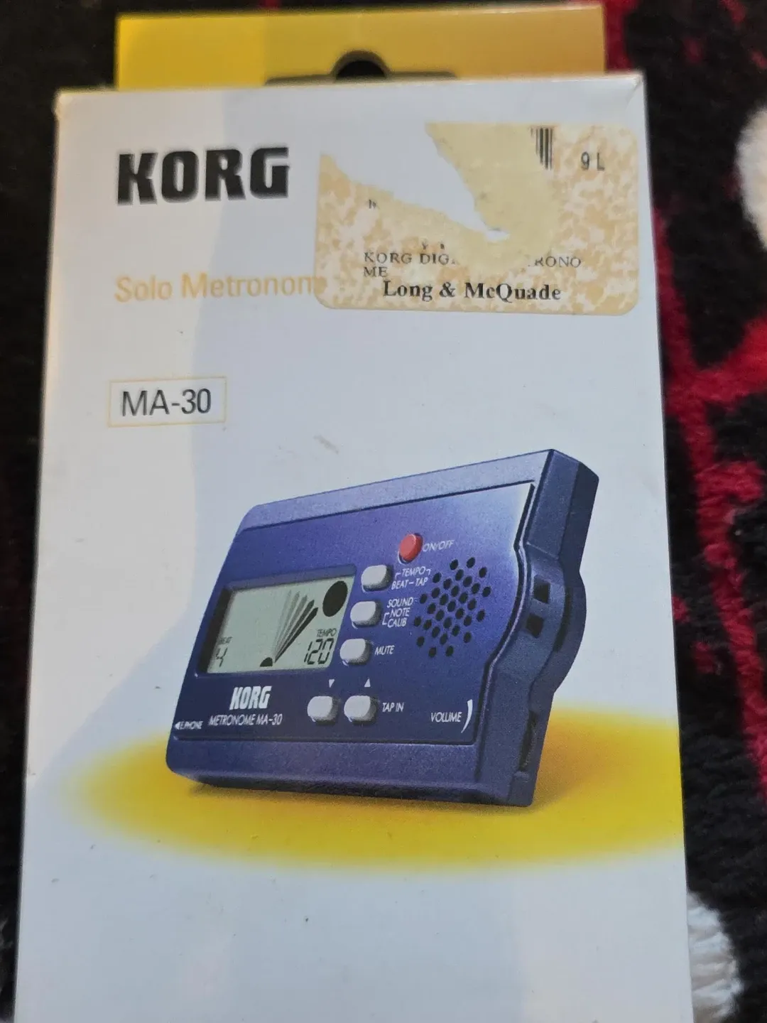 This is a Korg MA-30 digital metronome. It's compact and features a clear display for tempo and beat settings. Includes volume control and a tap tempo function.