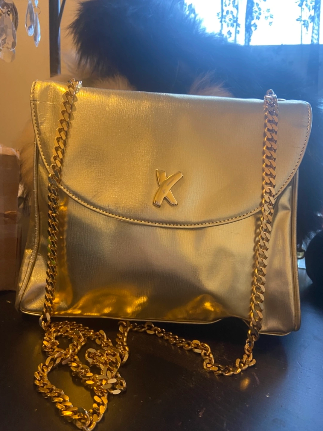 Paloma Picasso Gold Lame’ gold chain purse Authentic