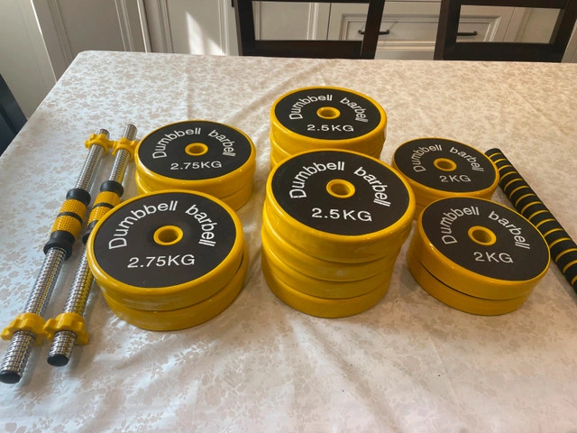 1. Adjustable dumbbells/barbell ($150 separately) Pictures 1 and 2 Total weight is 39 kg or 86 lbs: - 4 x 2 kg - 8 x 2.5 kg - 4 x 2.75 kg 2. Foldable adjustable multipurpose bench ($80 separately) Pictures 3, 4, and 5 3. Foldable roman bench ($140 separately) Pictures 6, 7, 8 4. Pull-up bar ($20) Pictures 9 and 10 If you were to purchase everything, the discounted total is $320. Condition: Used - Like new For Sale By: Owner Payment: Cashless payment, Cash accepted