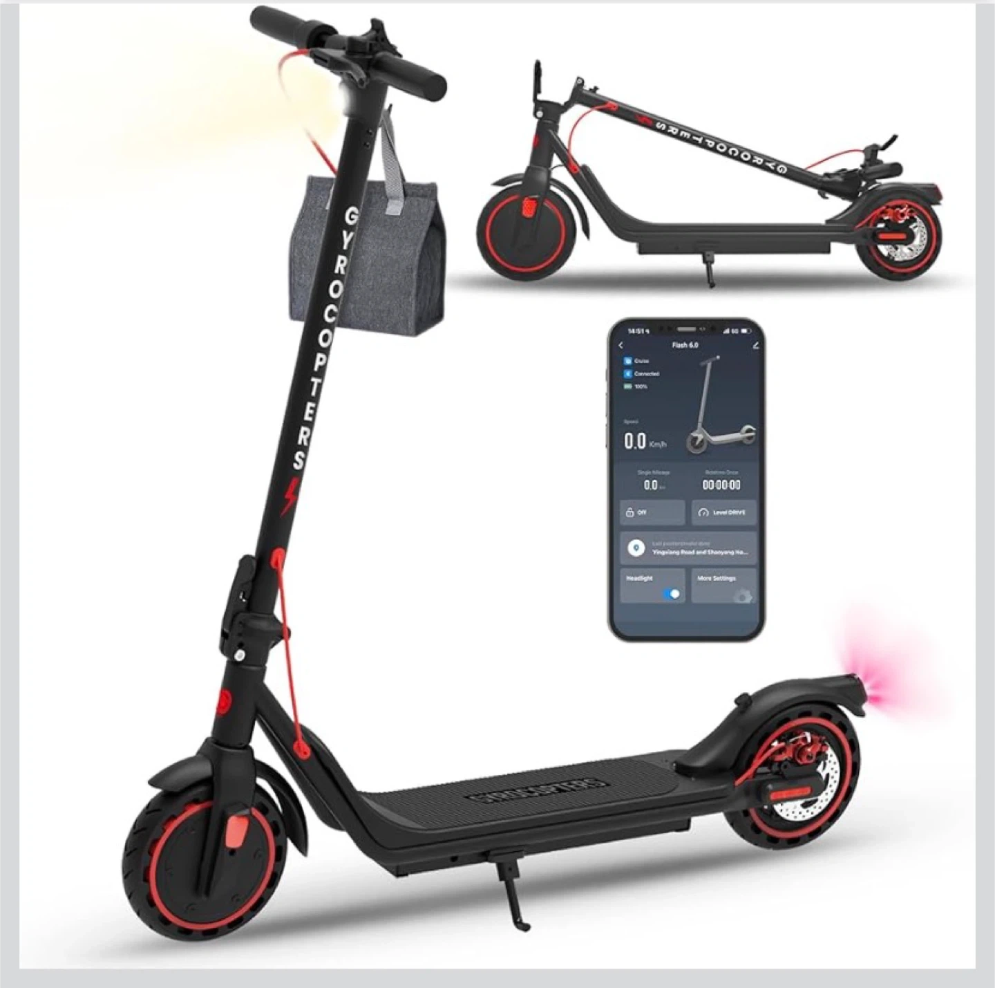 77Selling a GyroCopters Flash 6.0 electric scooter! It's in great shape and ready for some fun rides around town. The scooter features a sleek design and a user-friendly app for easy control of settings like headlight and speed. Get ready to zip around with this awesome scooter!