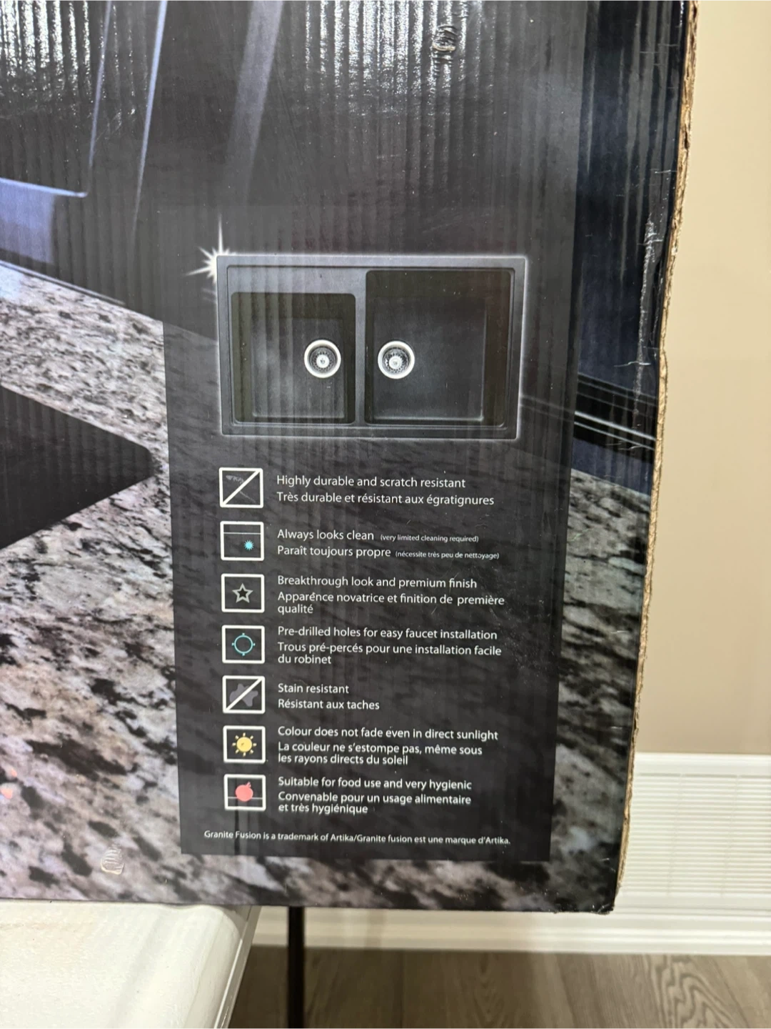 Up for sale BNIB granite composite 34 inch double sink. Can be mounted counter or undermount. Asking $300 or best offer.