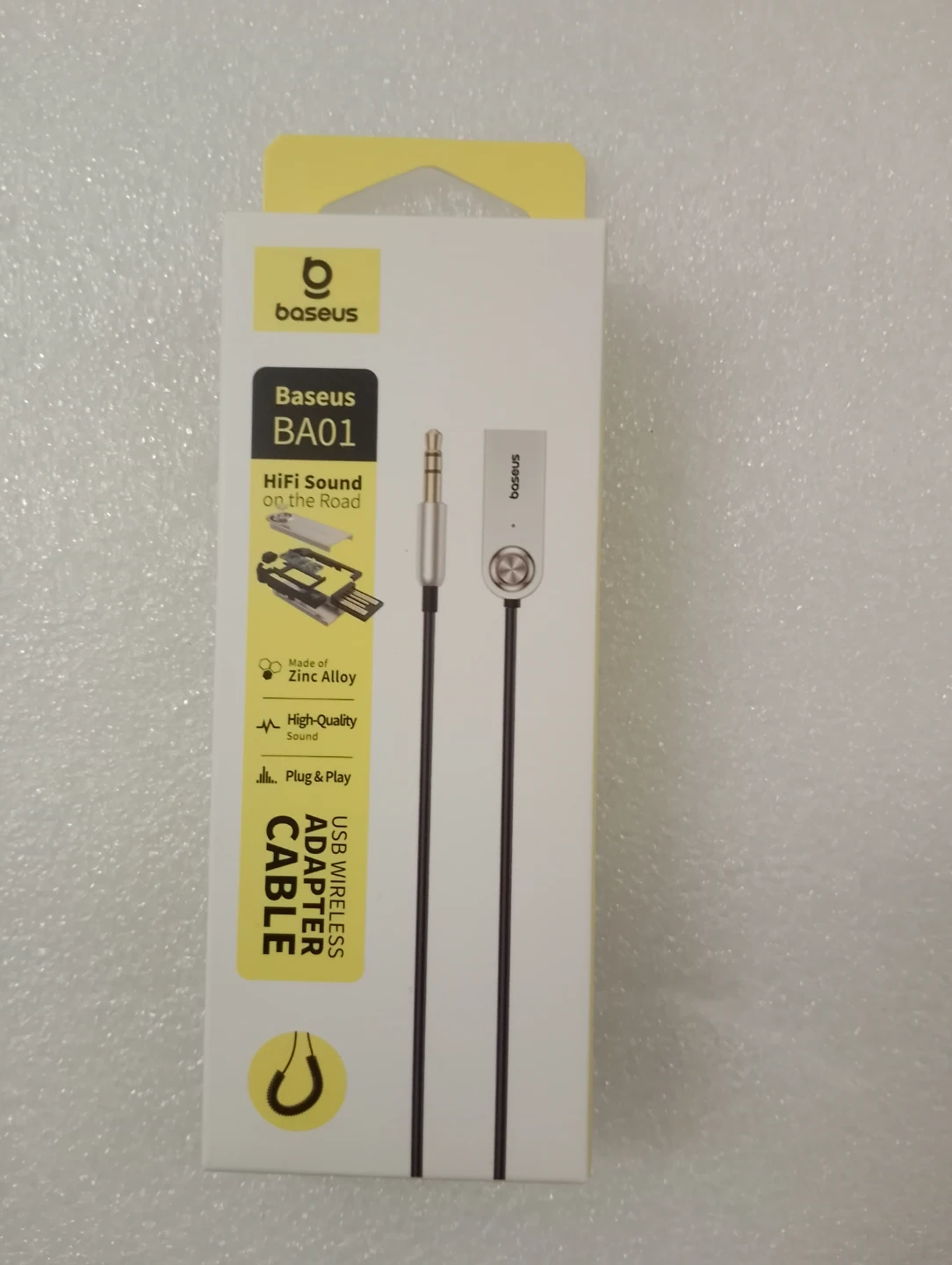 This is a Baseus BA01 USB wireless adapter cable. It's made of zinc alloy and features high-quality sound with plug-and-play functionality. The cable is 1.5 meters long.