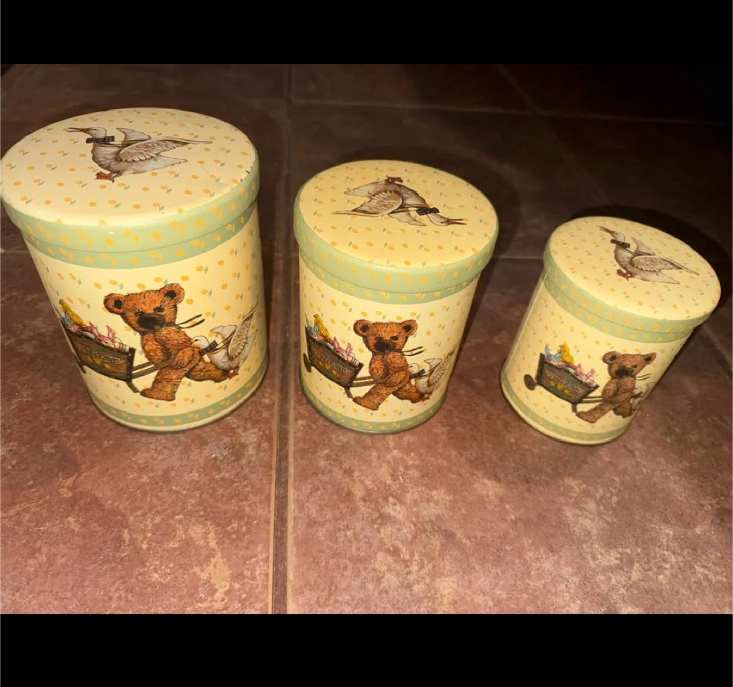 Set of 3 Decorative Tins with Teddy Bears and Ducks