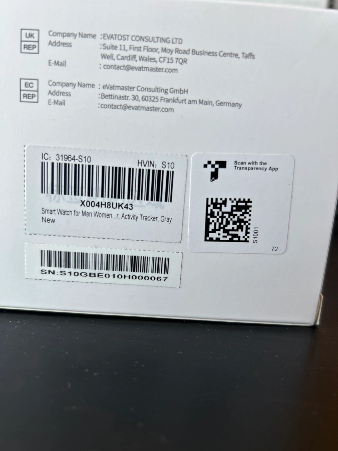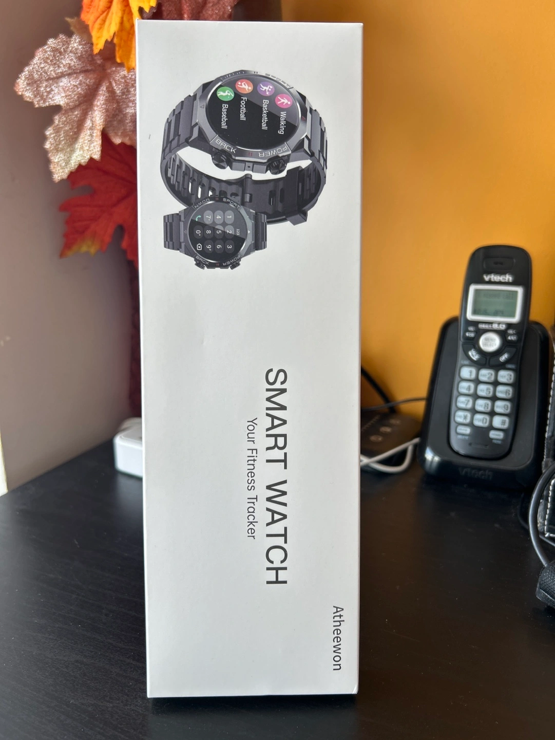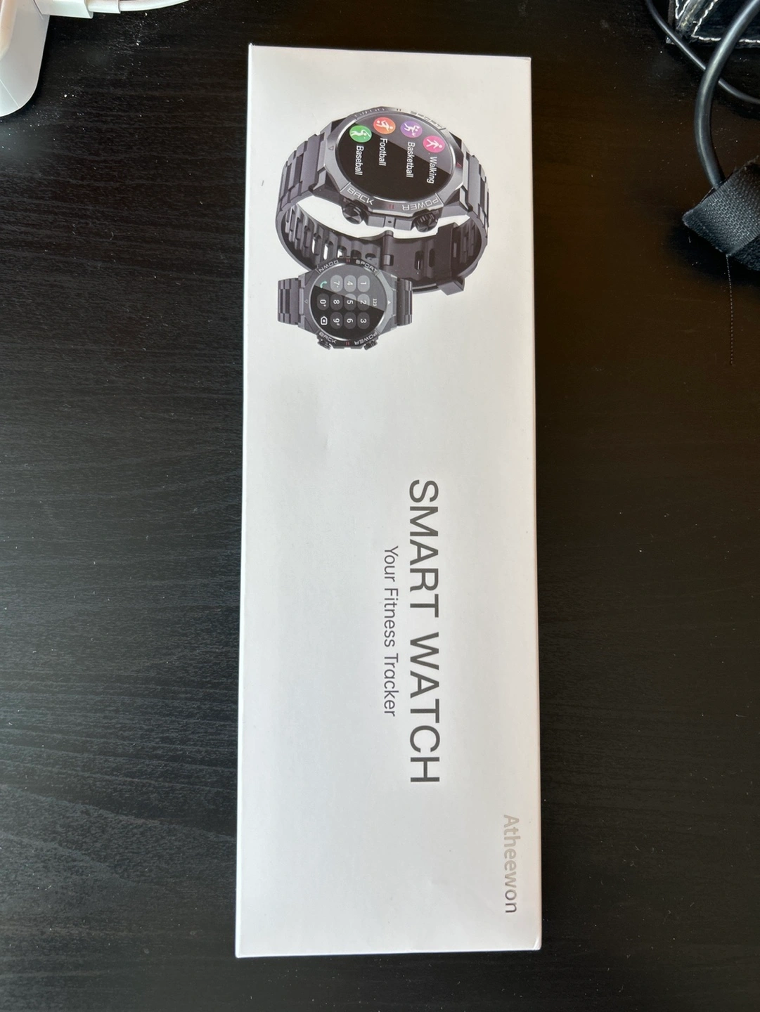 Brand new, gray AtheeVon S10 smart watch. Fitness tracker features include heart rate, sleep, and step monitoring. Compatible with Android 5.0 or iOS 9.0 and above. IP68 waterproof rating. 1.39 inch color TFT-LCD display. Three-axis sensor and green light rate sensor.