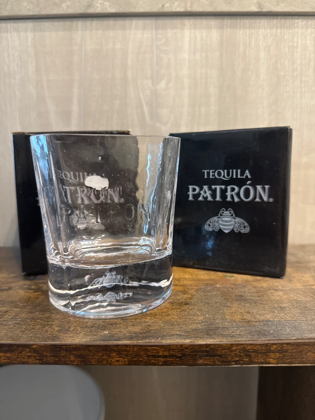Patrón branded rocks glass featuring a distinctive bee design. Comes with original box. Perfect for enjoying your favourite tequila neat or on the rocks!