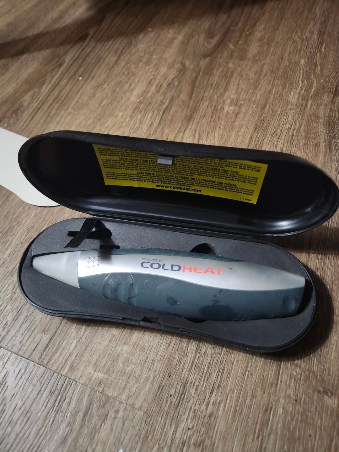 This is a Cold Heat soldering tool, powered by Cold Heat technology. It comes with its own protective carrying case. The tool is designed for precision soldering work.