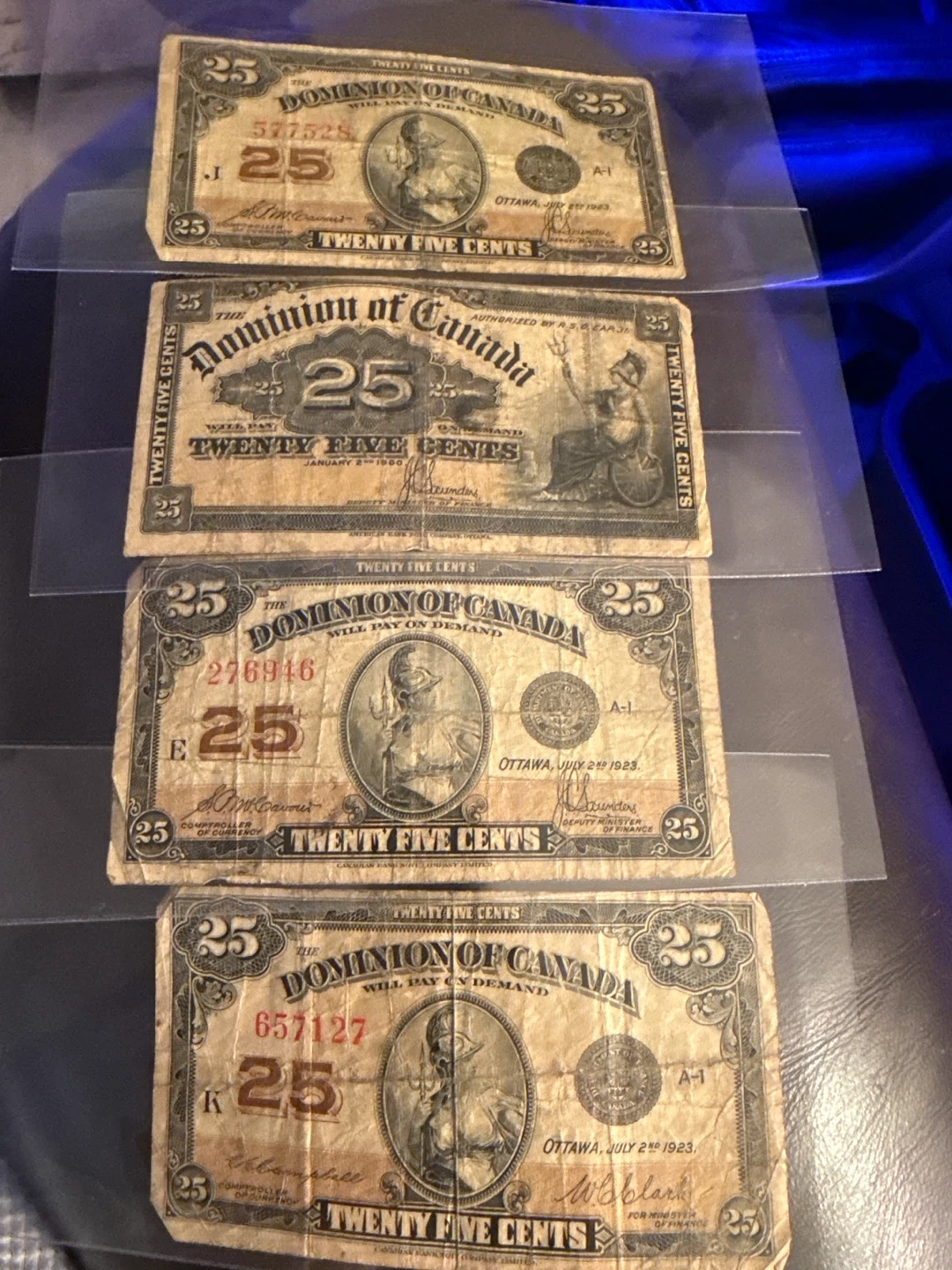 Set of 4 Dominion of Canada 25 Cent Notes (1923)