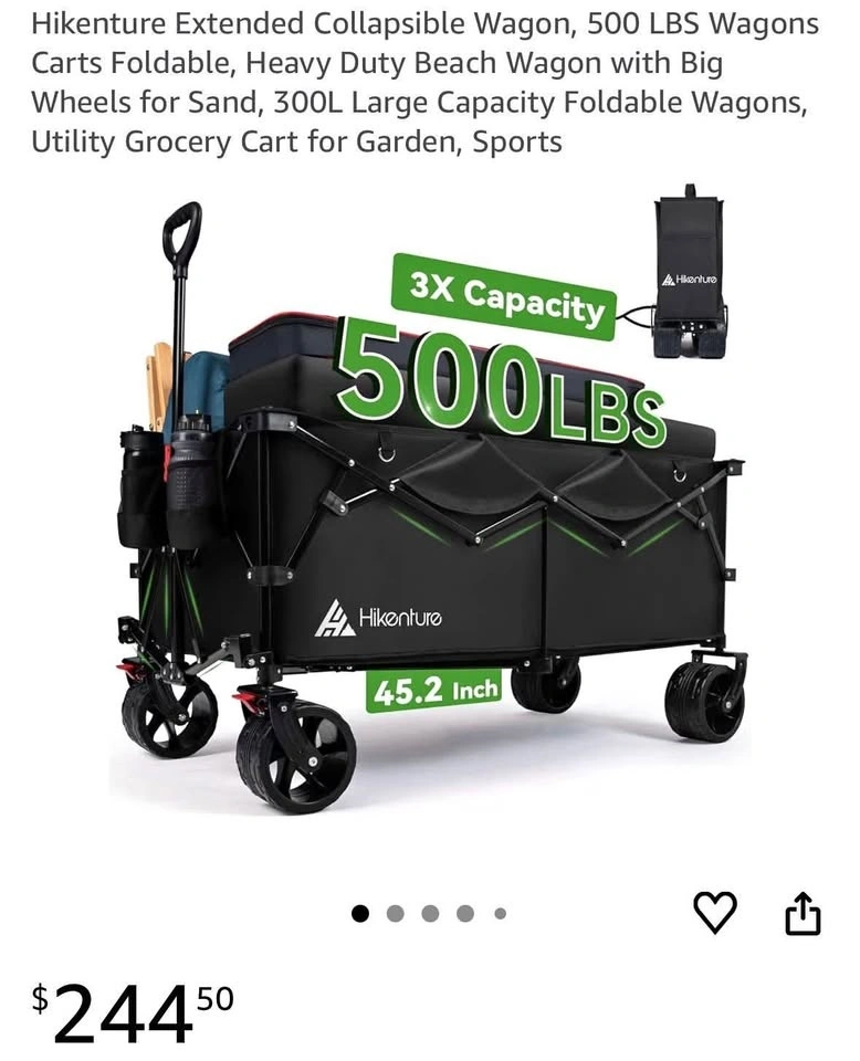 Hikenture Extended Collapsible Wagon, 500 LBS Wagons Carts Foldable, Heavy Duty Beach Wagon with Big Wheels for Sand, 300L Large Capacity Foldable Wagons, Utility Grocery Cart for Garden, Sports. Located near Major Mackenzie and Weston Rd. Final sale. Let me know if you're interested!