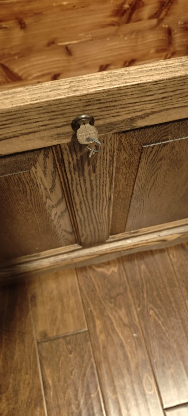 Meticulously crafted queen size, Rustic Oak Hope Chest with two trays, casters, lock and key. It's made of oak wood with cedar lined interior and has a beautiful finish. Perfect for storing blankets, linens, or other items. Fits by your bed or a window seat. Great family heirloom.