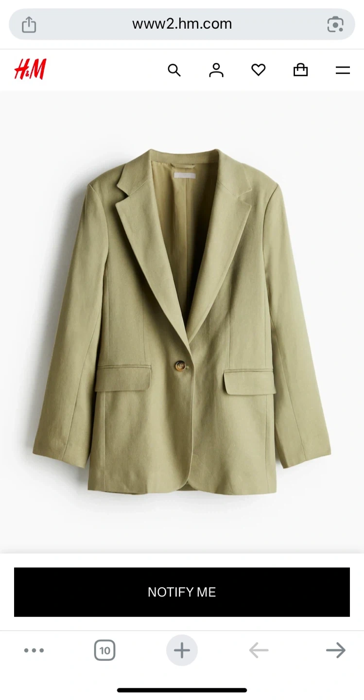 10Selling a gently used H&M beige blazer in size 6. It's in great condition and perfect for adding a touch of sophistication to any outfit. This blazer is a stylish and versatile piece for your wardrobe!