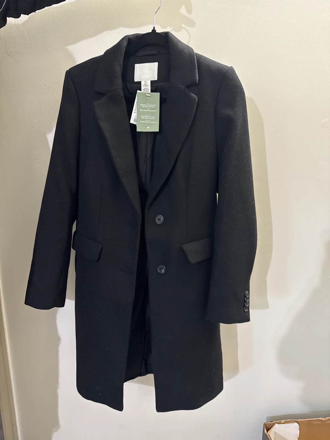 71Selling a stylish black coat from H&M in size small. It's in great condition and ready for a new home. Perfect for layering this season!this is my wife coat and in brand new