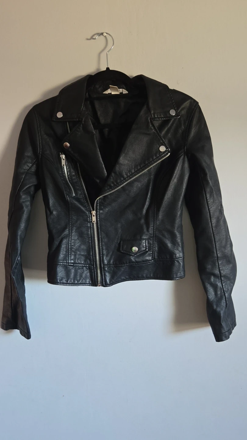 26H&M black faux leather biker jacket ♡ Stylish & Edgy ◇ Gently used 🏡 Pick up in St. James /Silver heights 🐱 loved home Check out my other listings!