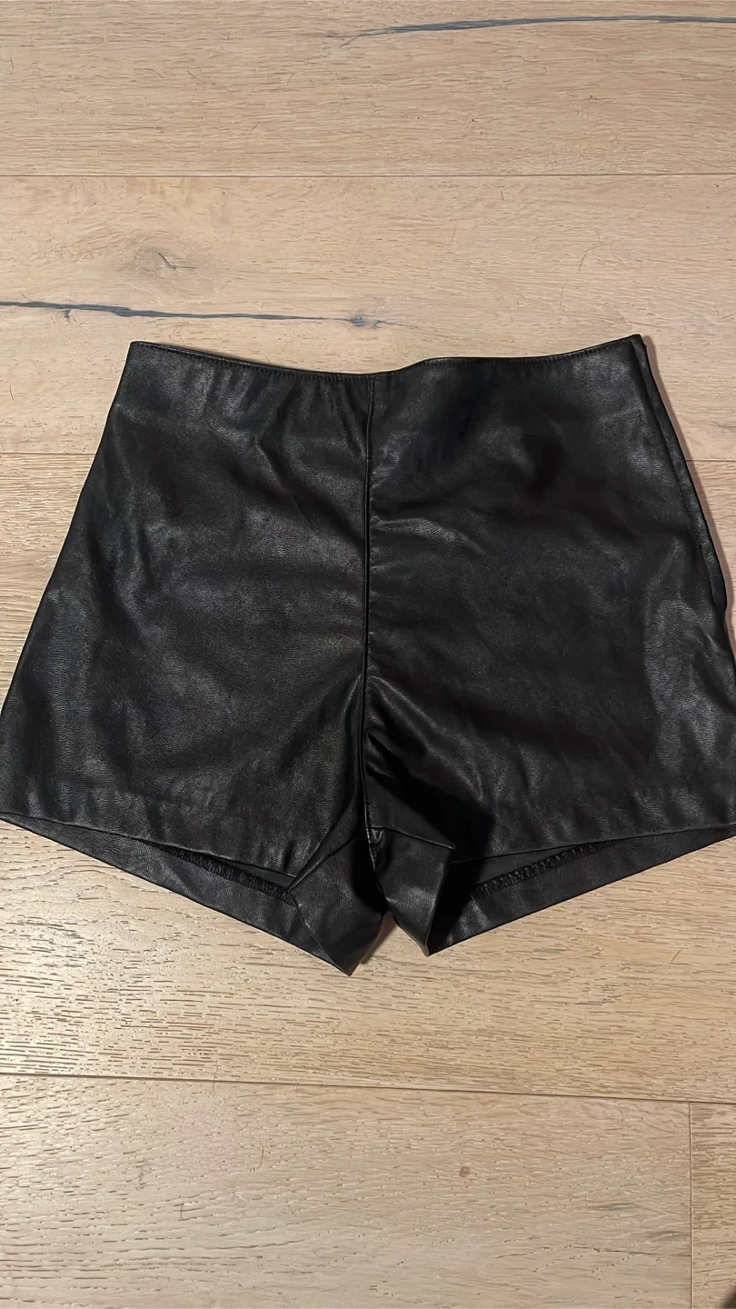 18Selling a pair of H&M black faux leather shorts in size 4. They're in great condition, they’ve never been worn.