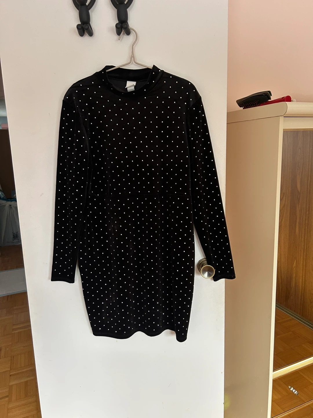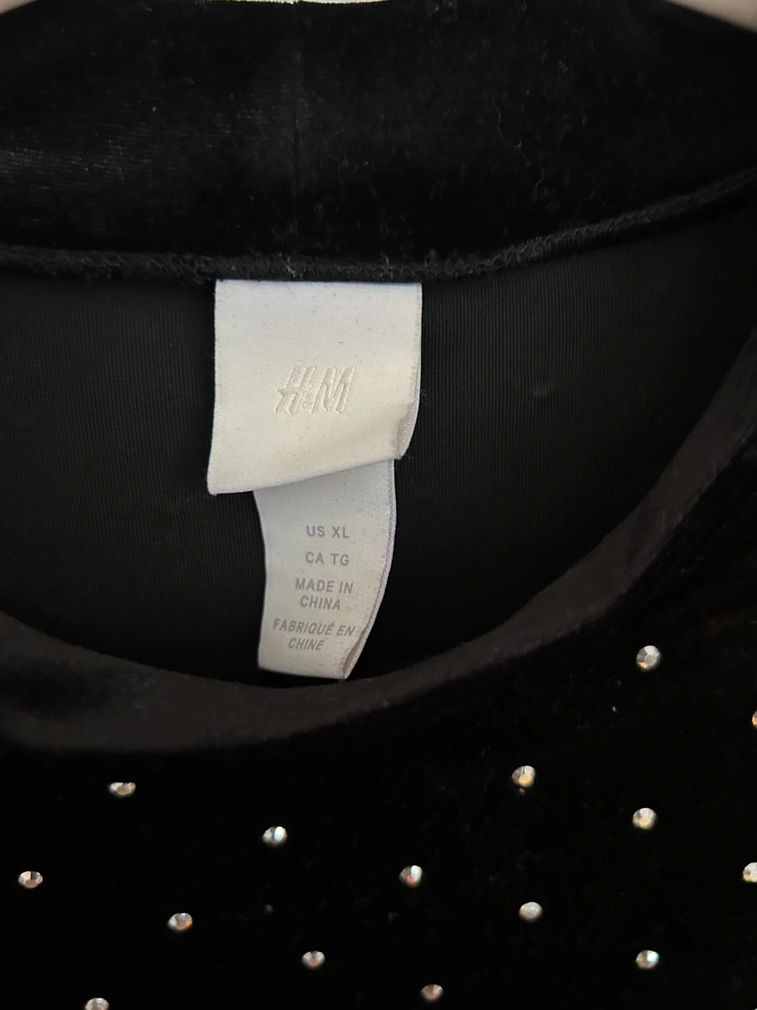 567Selling a stylish black velvet dress from H&M! It's a size XL and features a lovely design with small, shiny embellishments. Perfect for New Year’s Eve and the holidays.