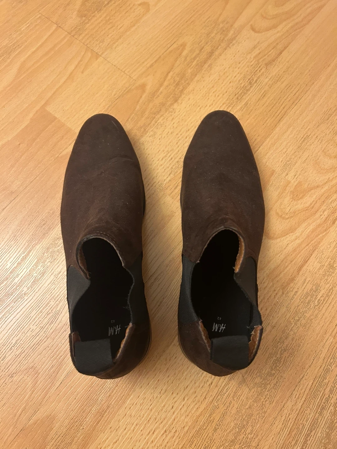 10Selling a pair of H&M Chelsea boots in brown suede. They are size 42. These boots are perfect for adding a touch of style to any outfit!