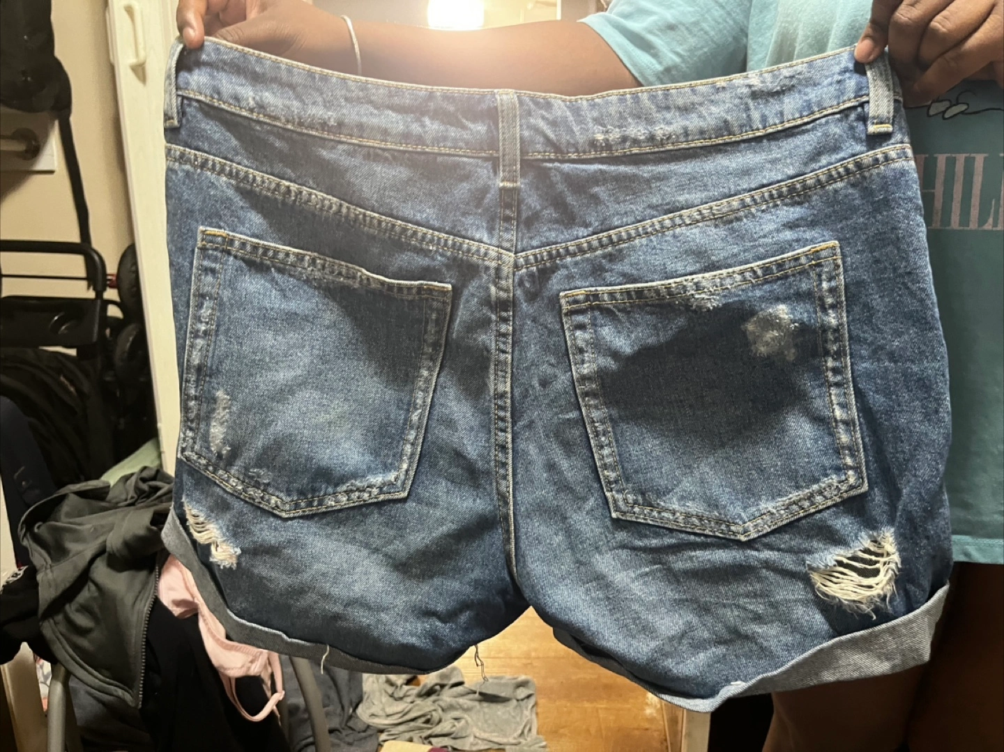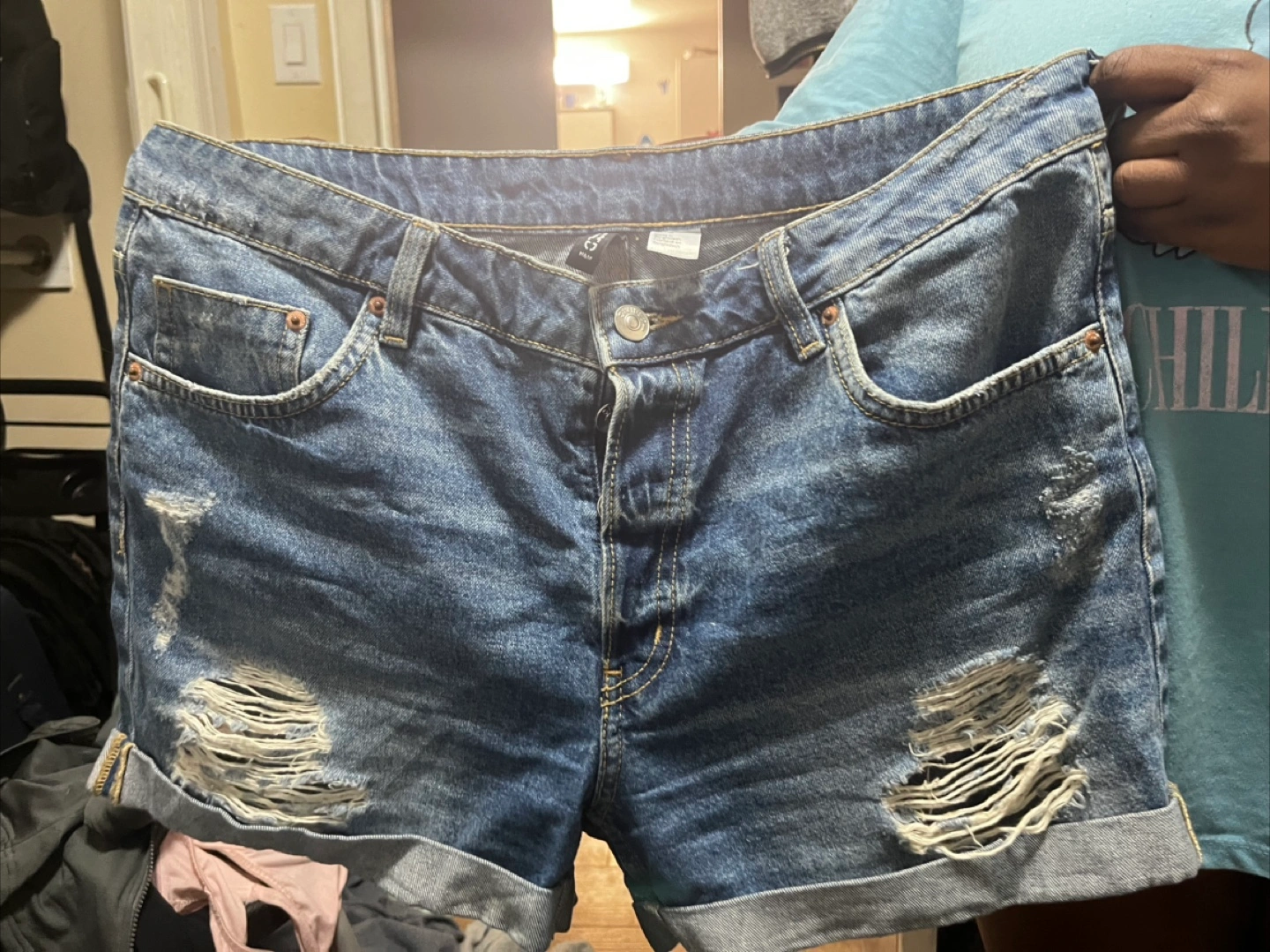 42Selling a pair of H&M Divided denim shorts. They're a size 10 and have a cool, distressed look. Perfect for summer!