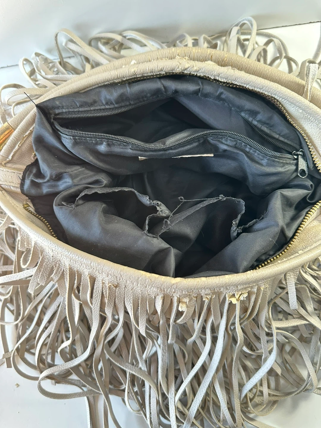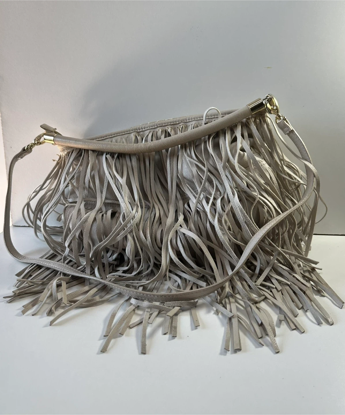 Selling a cute H&M shoulder bag with a fun fringe detail! It's silver in colour and made with 100% polyester material. Perfect for adding a bit of flair to your outfit