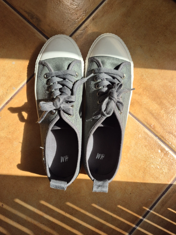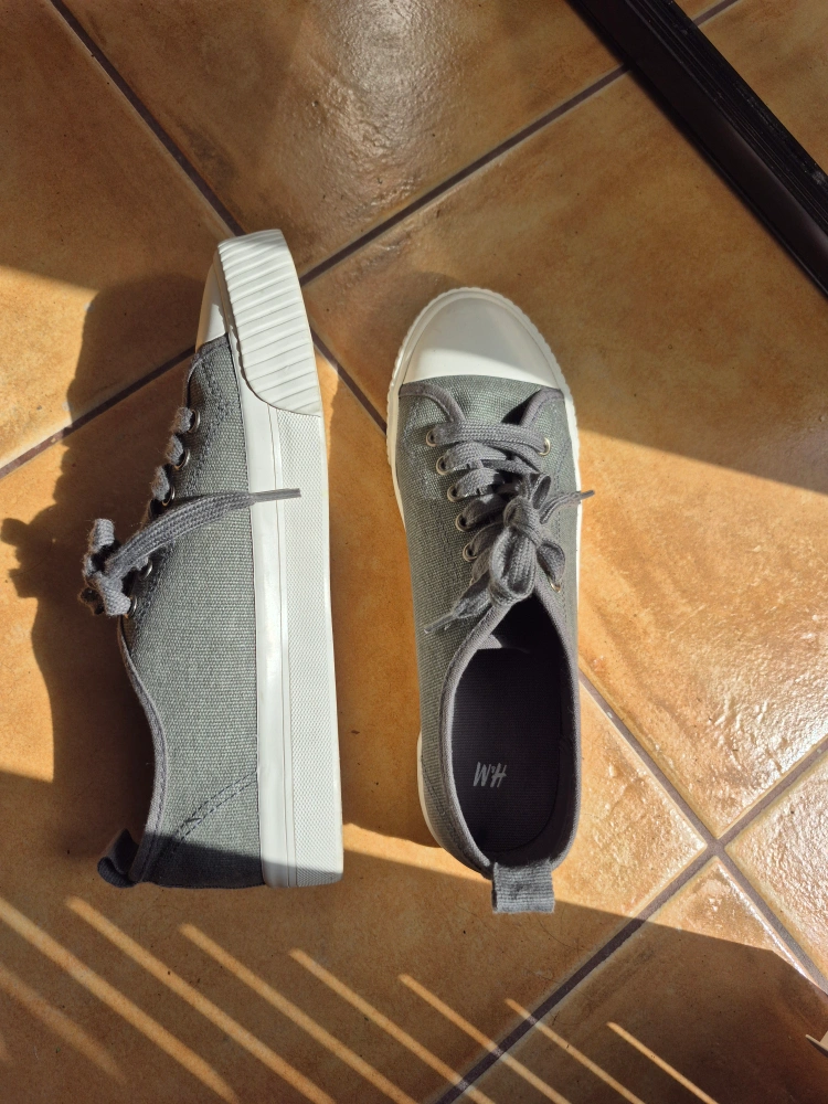 Selling a pair of H&M grey canvas sneakers. They are in great condition and ready for a new home! Perfect for casual wear and everyday outings