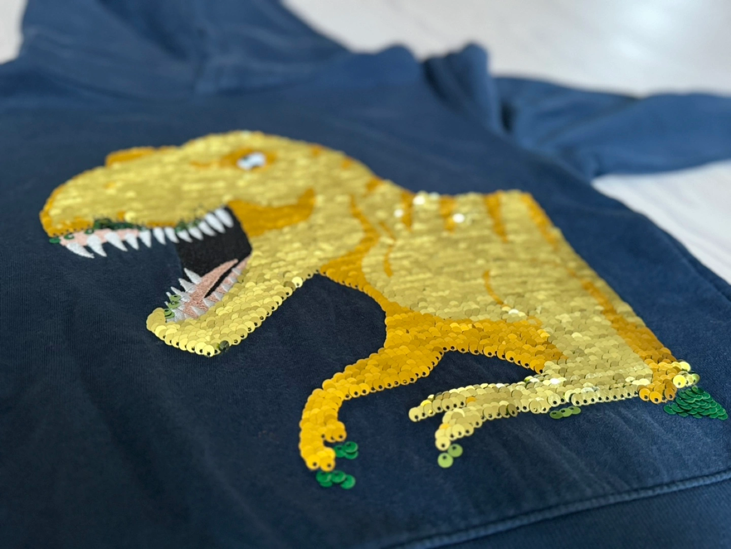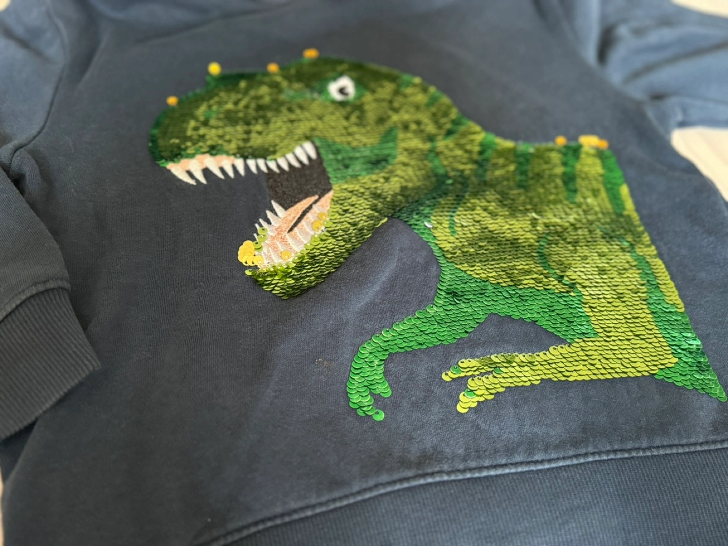 H&M Kids' Blue Sequined Dinosaur Hoodie size US 5T/6 EUR 110/116