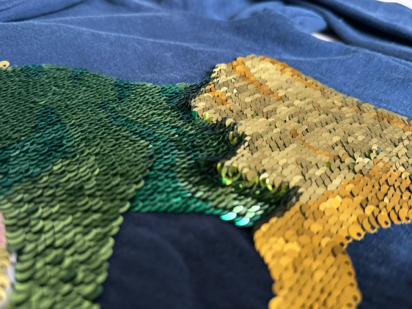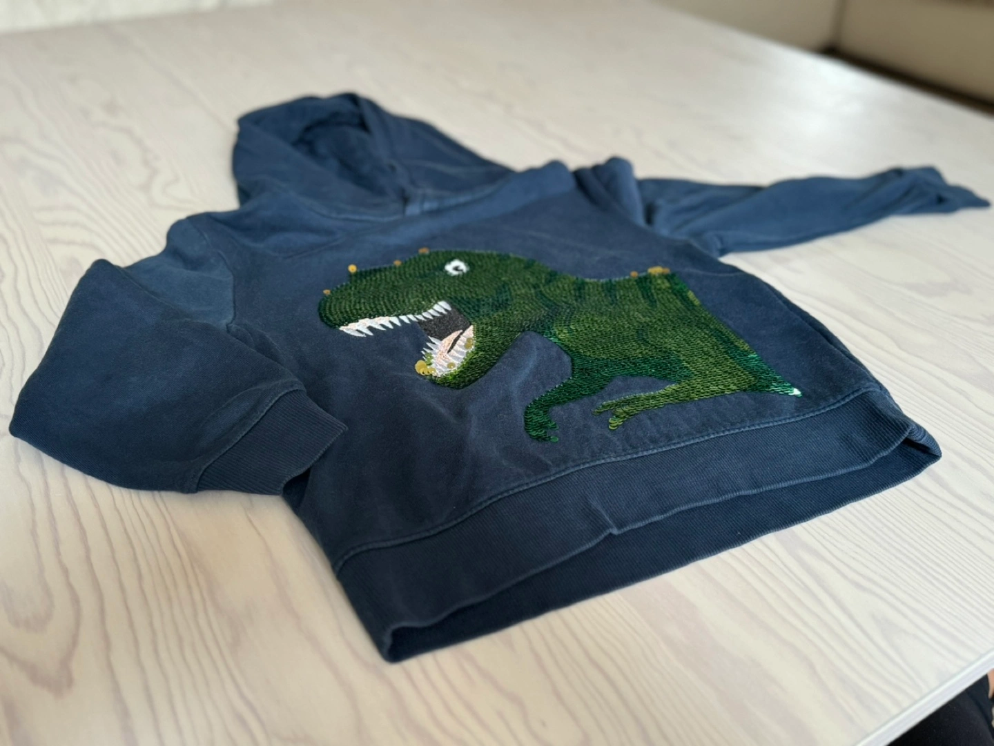 31H&M Blue hoodie with a large sequined dinosaur on the front. The dinosaur is green or gold (your choice). Hoodie has a hood. Very clean. Cash or e-transfer. Pick up or shipping.