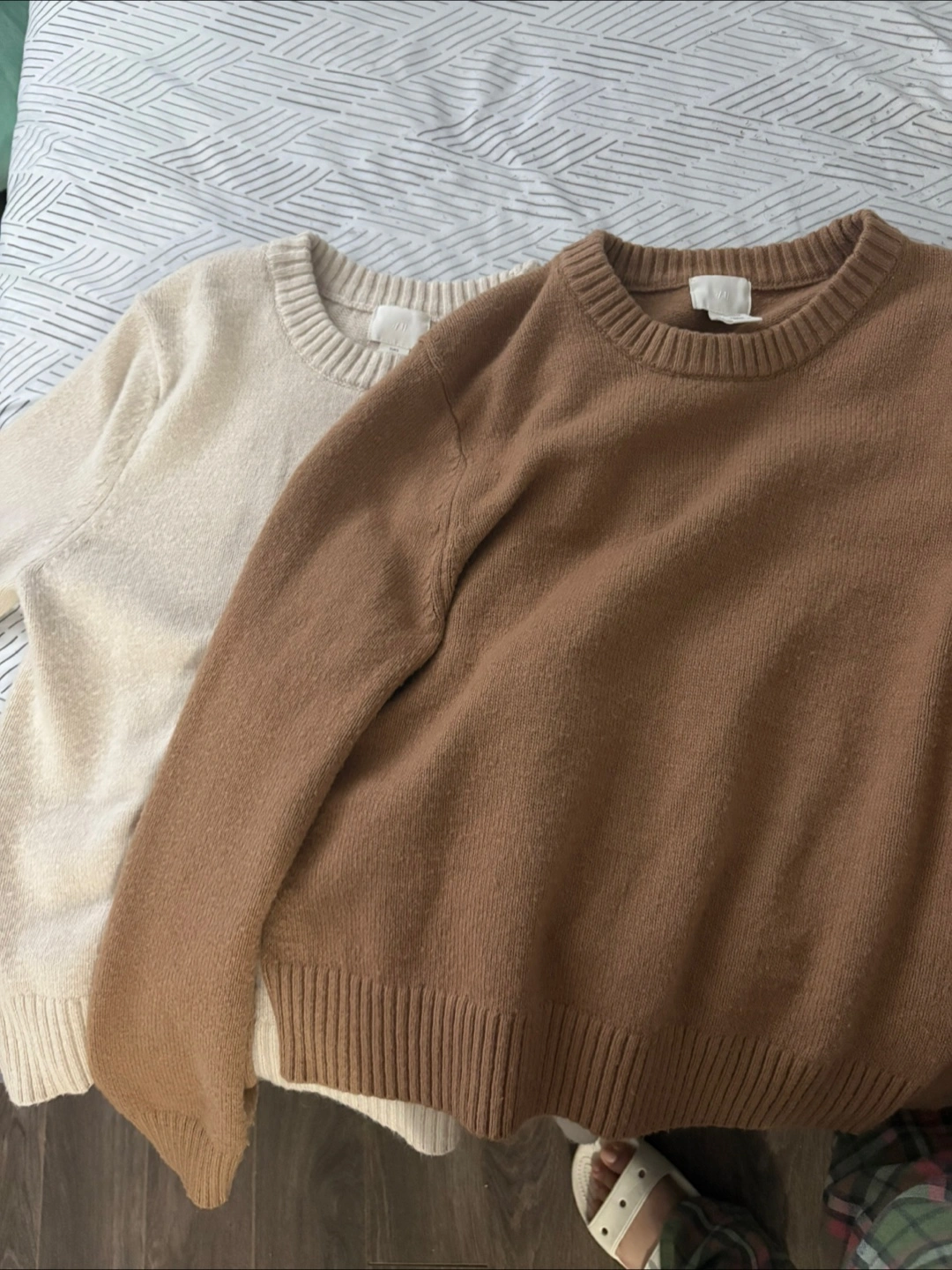 Selling two gently used knit sweaters from H&M! One is a lovely beige colour, and the other is a warm brown. Both are in great condition and ready for a new home. Perfect for layering during the cooler months!