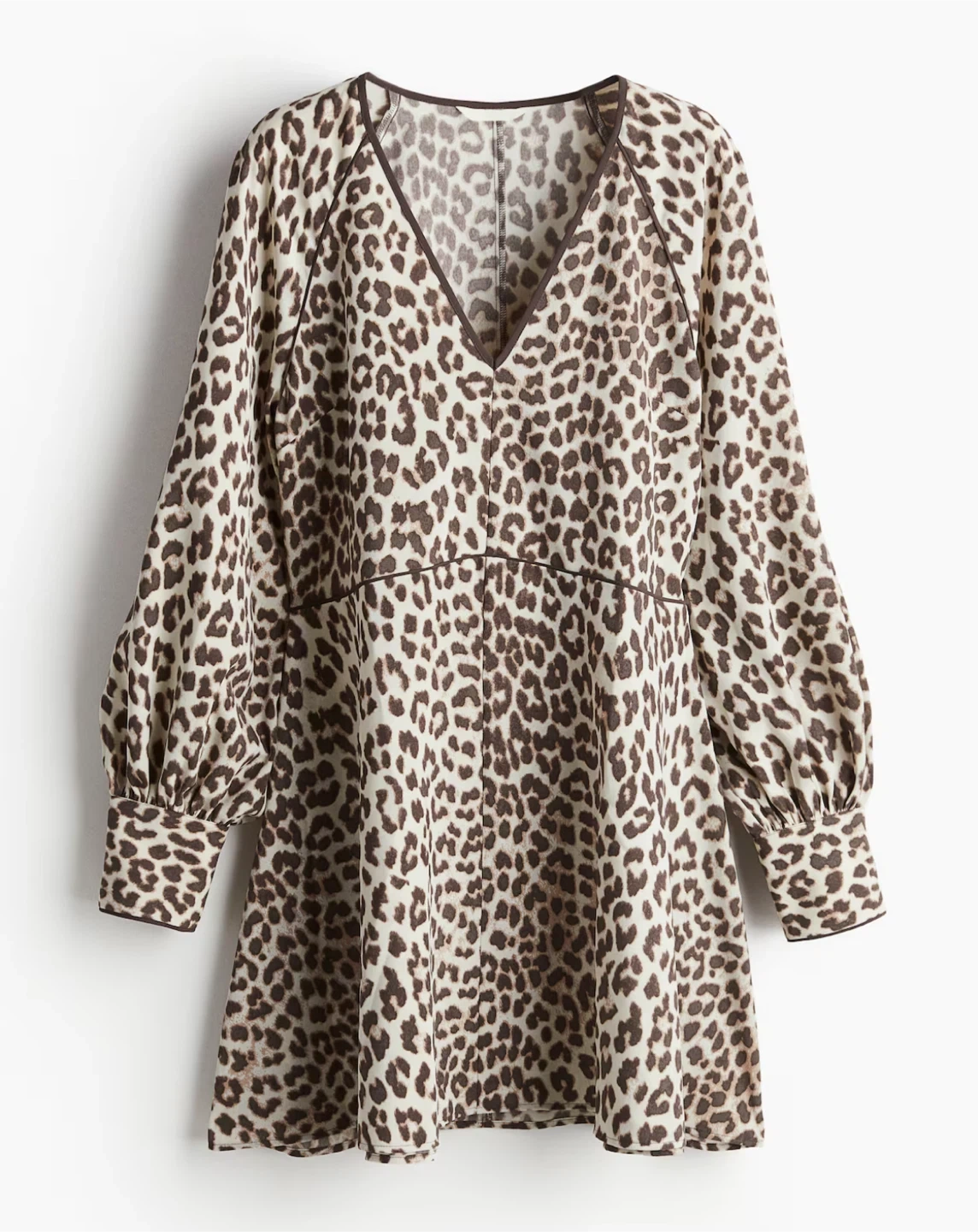 60Cute H&M dress with a stylish leopard print! It features a flattering V-neck and long sleeves with elasticated cuffs. Perfect for a night out or a casual day. Only worn once.