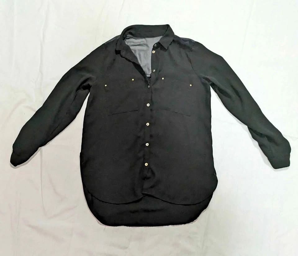515Excellent condition, long sleeves black sheer noise. Office attire, great for layering. Light weight, very black Blouse, women's size 6. Work for size small to medium.