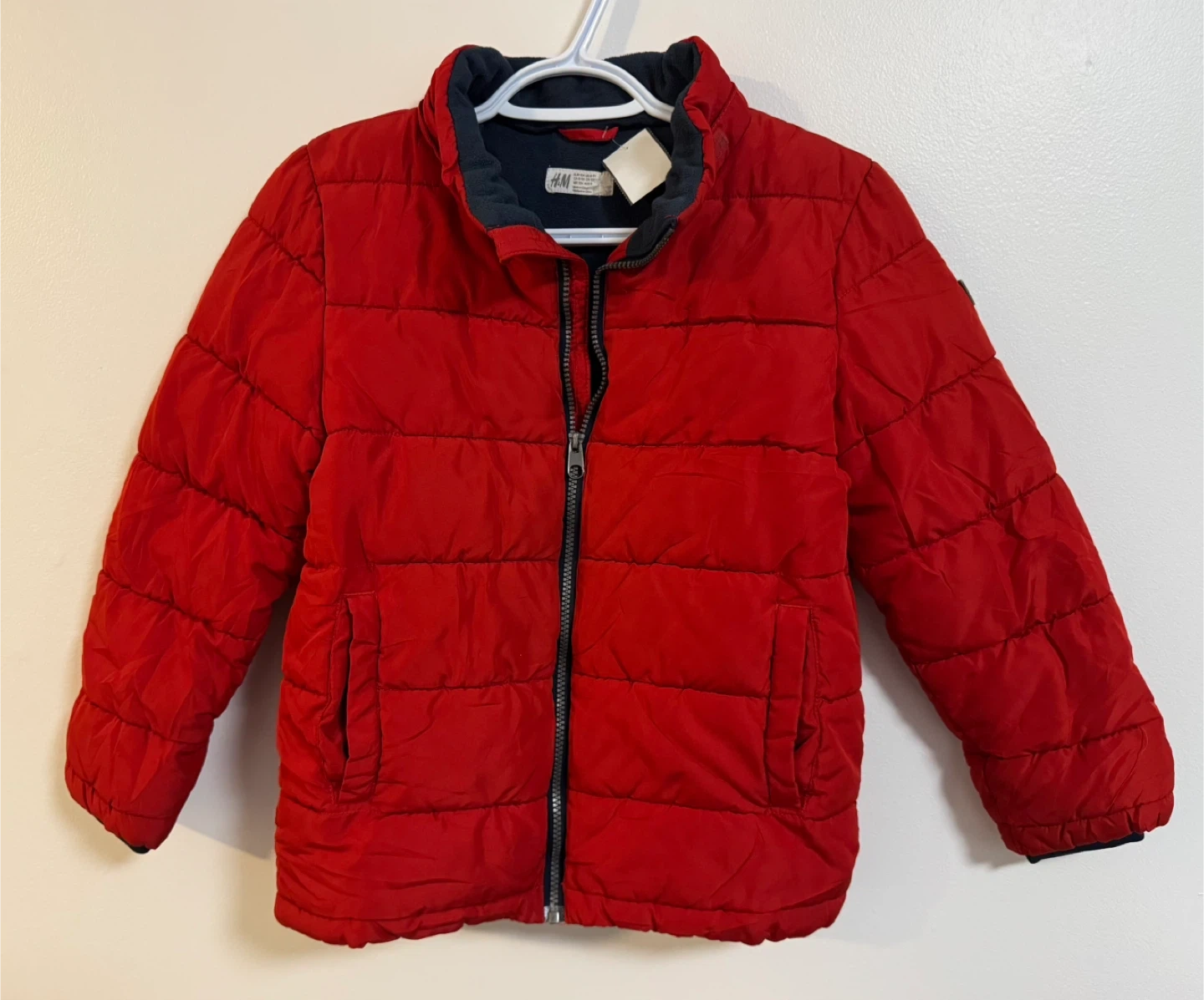 65Here's a cozy red puffer jacket from H&M, perfect for keeping your little one warm! It's a size 8-9 years (EUR 134, US 8-9Y, CA 8-9A, MX 134, AUS 9). It's in great condition and ready for a new home! Note : No Hoodie