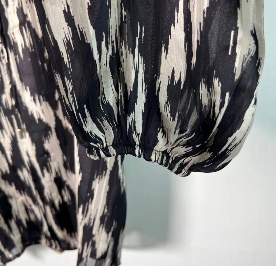 Only tried on. Sheer flowy. Not see-through. PERFECT for semi formal or the office. Pick up 1 min from King George Skytrain station.