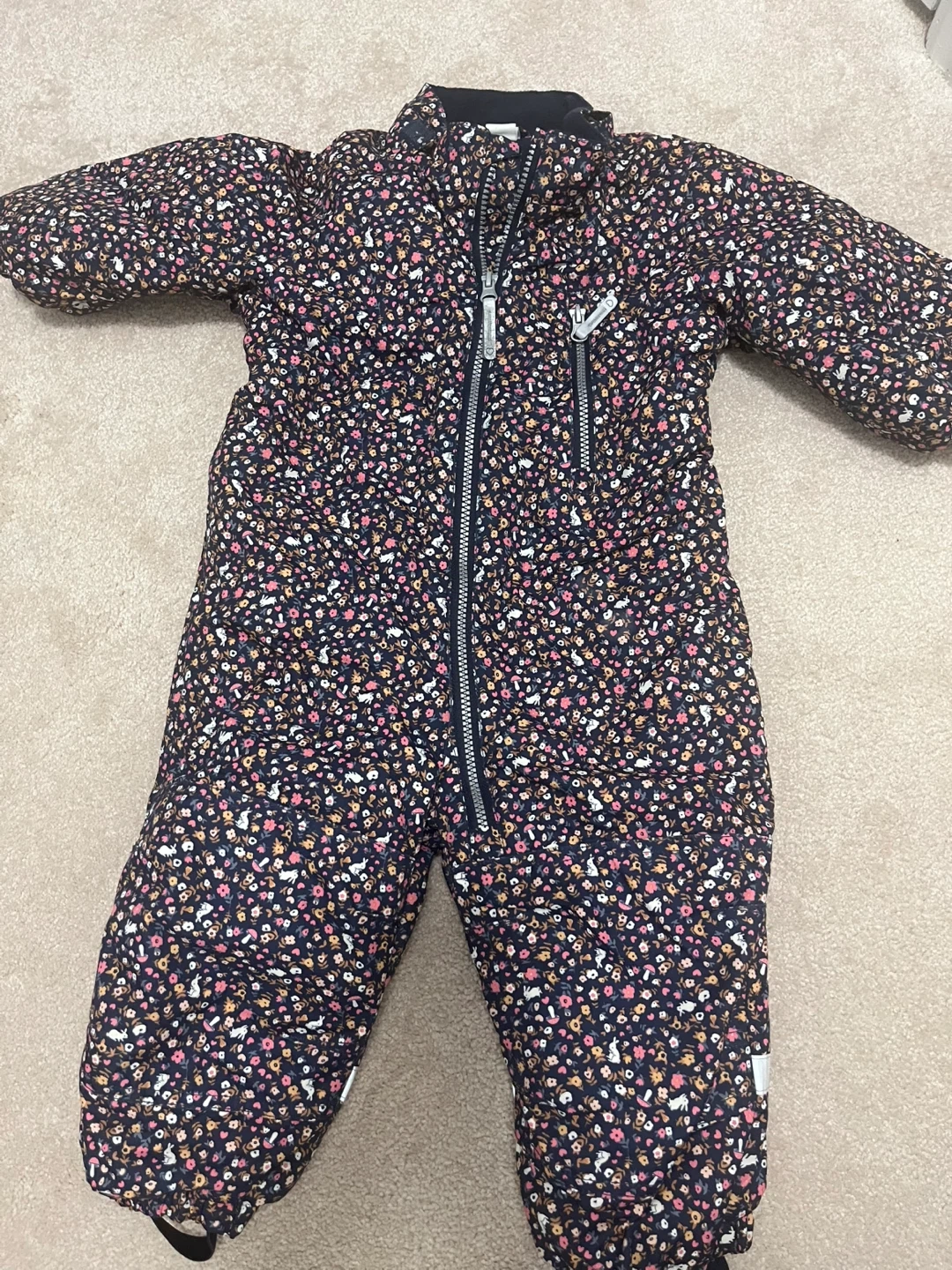 10A super cute Mini A Ture snowsuit with a lovely floral print! Perfect for keeping your little one warm and cozy during the winter months. It's in great condition