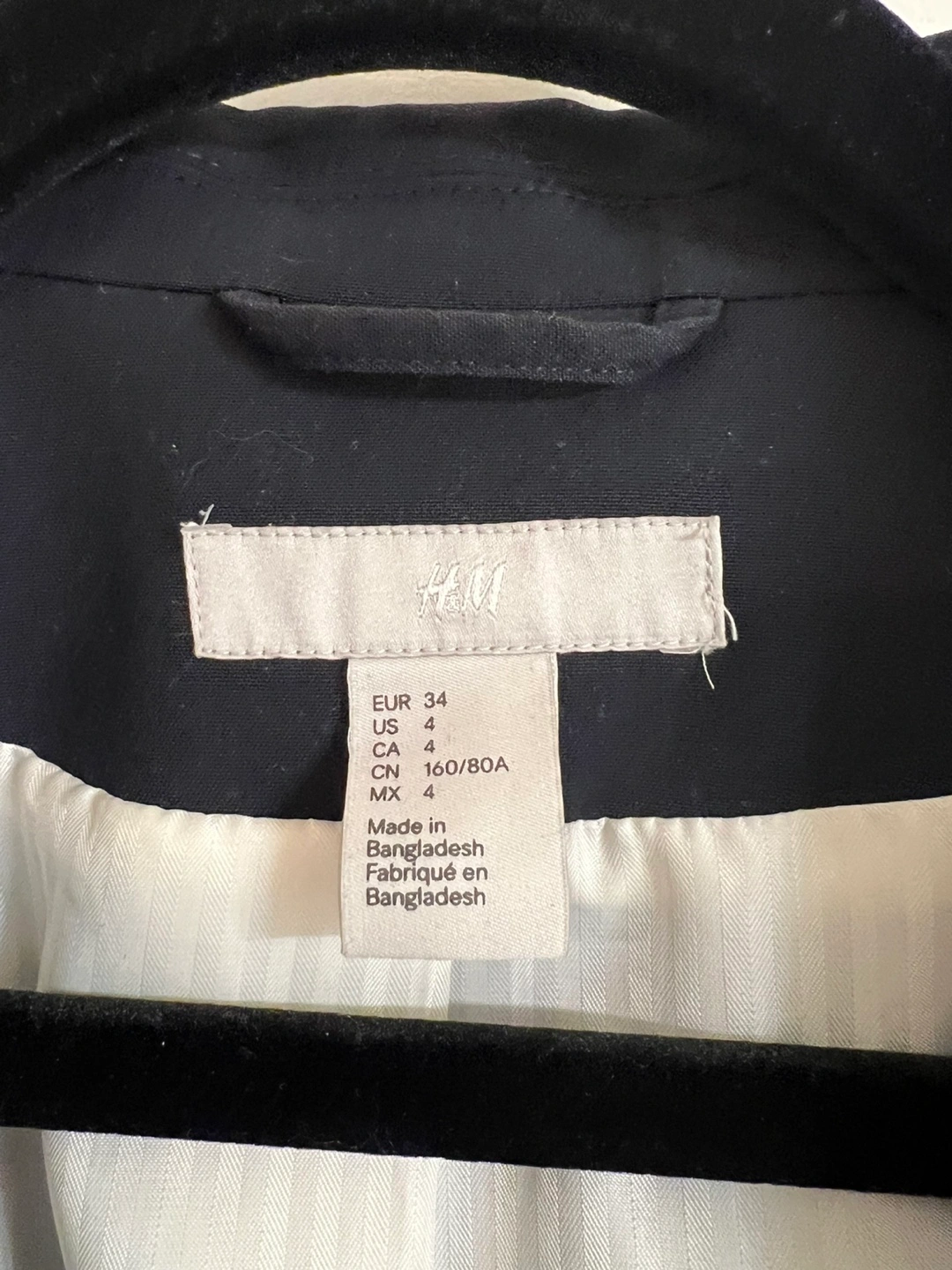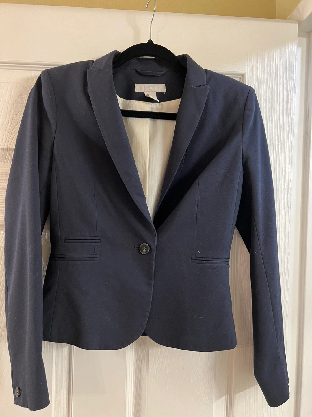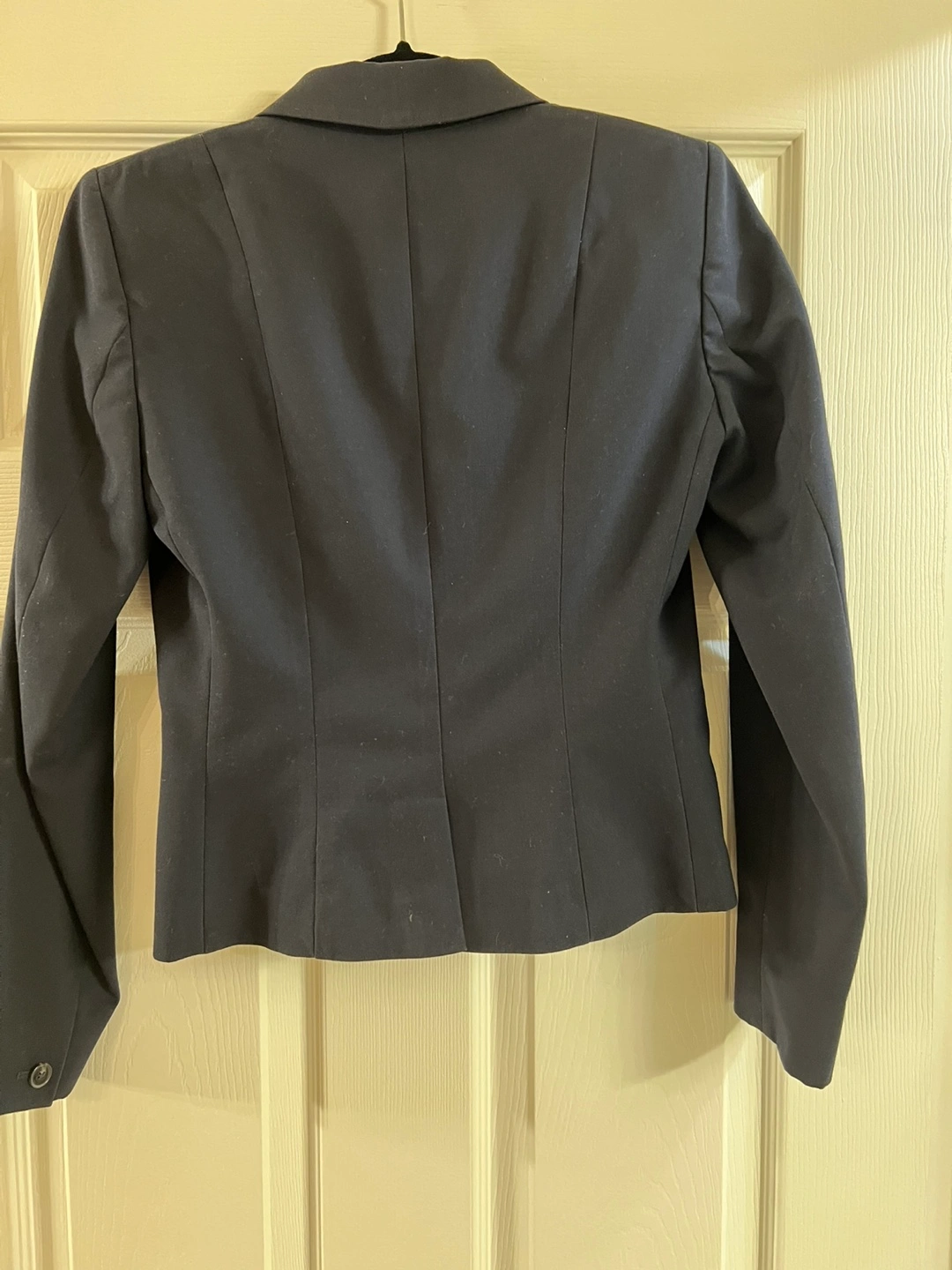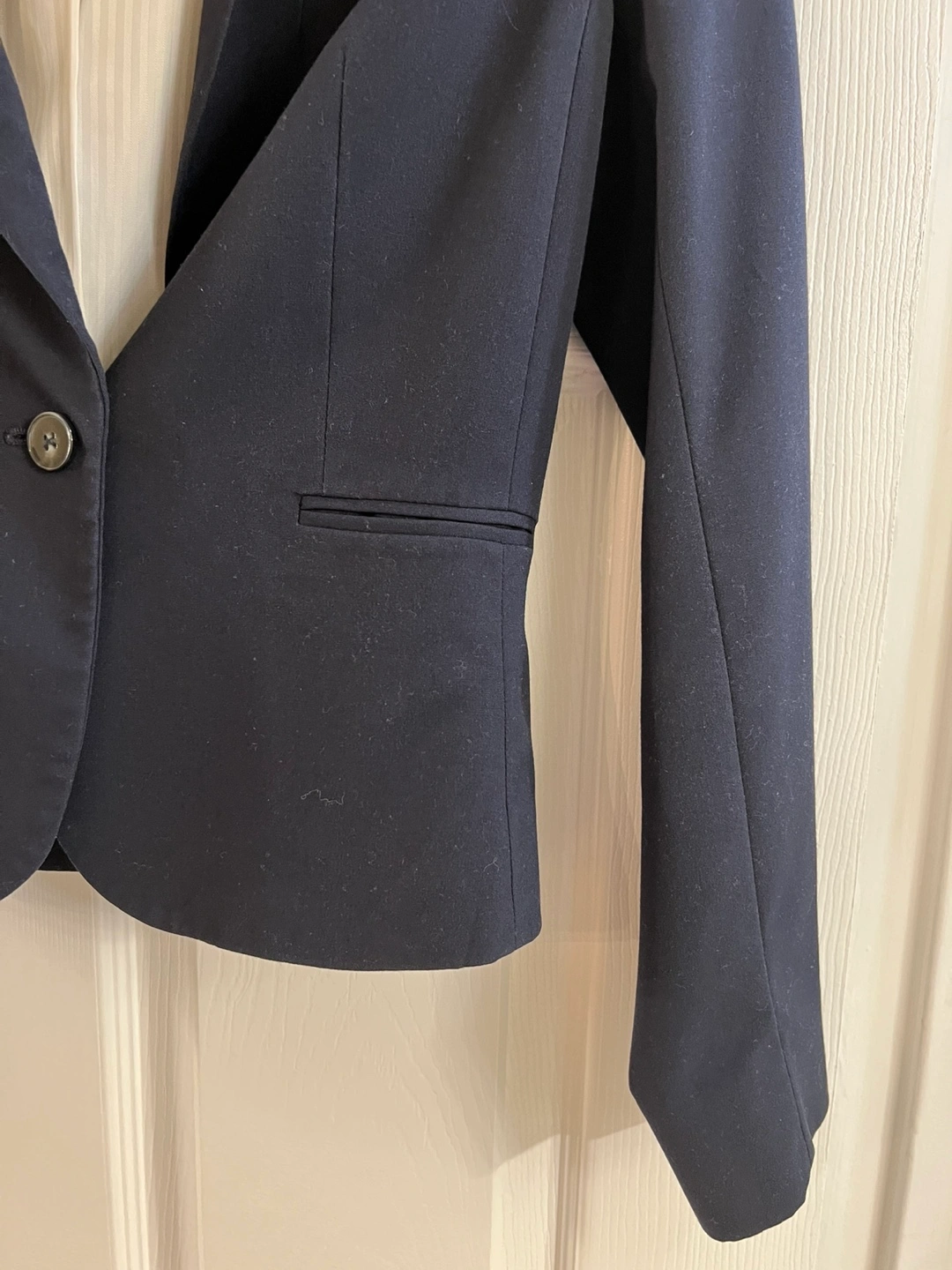 Navy blue women's blazer. Single-breasted, one button closure. Long sleeves, fitted silhouette. Size 4. Fits size 2 to 6 Pick up Yonge & St Clair Cash required Please see my other ads