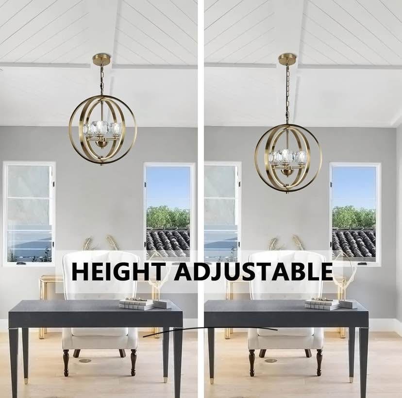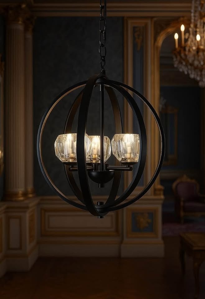 Brand Black Modern Crystal Chandelier - 3-Lights Pendant Light for Dinning Room, Globe Ceiling Light for Living Room, Luxury Kitchen Island Light Fixtures Over Table, Hanging Lighting for Entry, Foyer