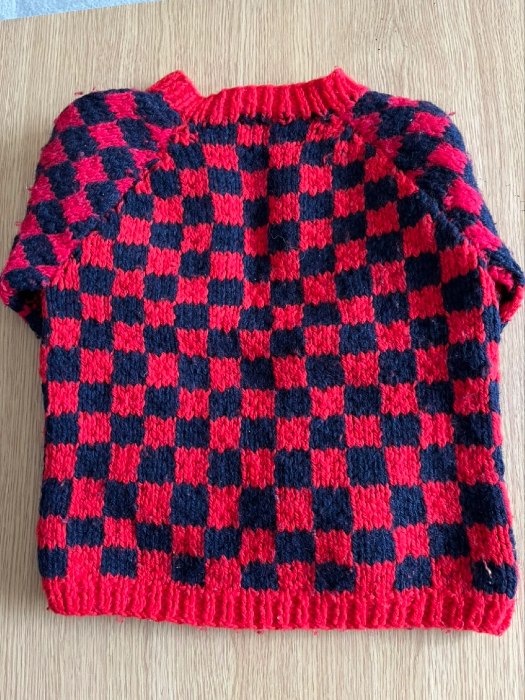 Hand-knitted Red and Black Checkered Cardigan (Age 2-4)