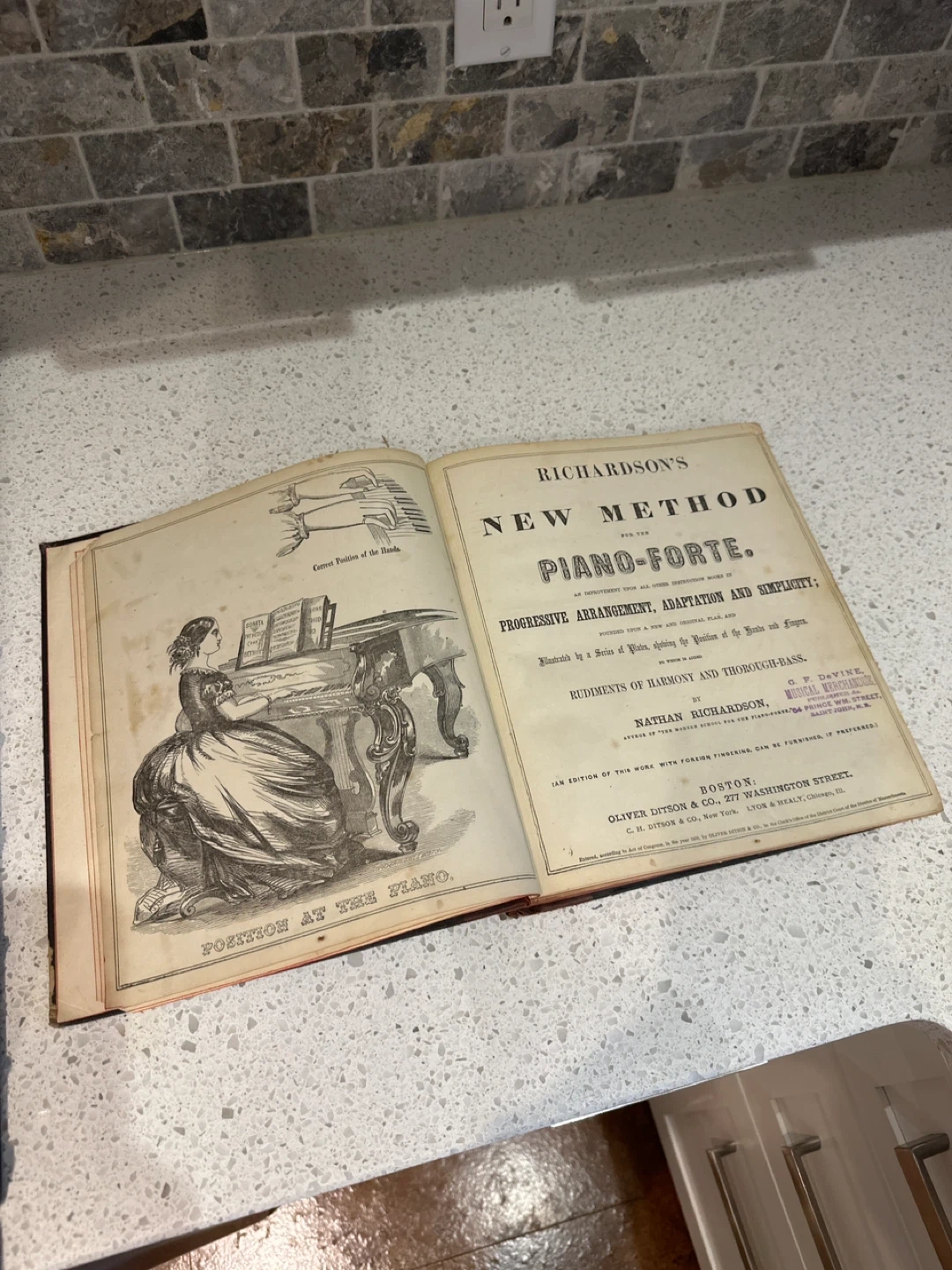 Selling a copy of Richardson's New Method for the Piano-Forte, copyrighted 1859
