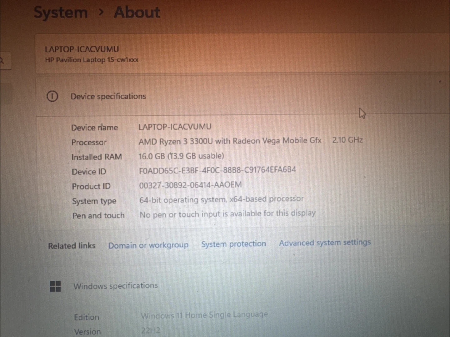HP Pavilion Laptop 15-cw1xxx with AMD Ryzen 3 processor.