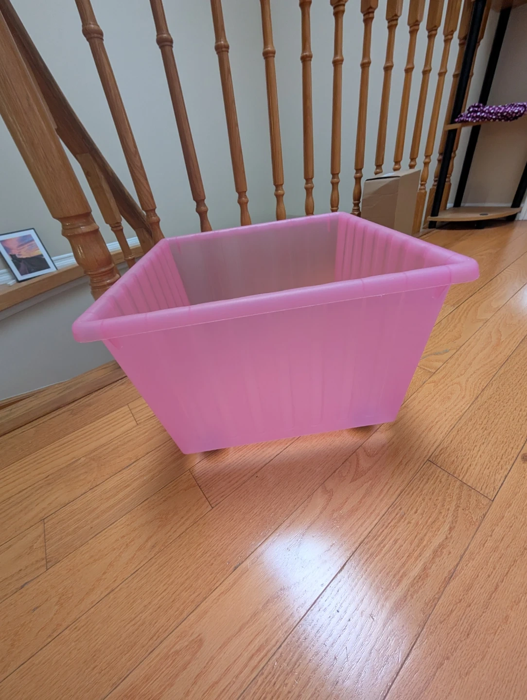 This is an IKEA VESSLA crate in pink colour. This storage crate has casters and is useful for organizing toys or other household items. 34x34x26 cm