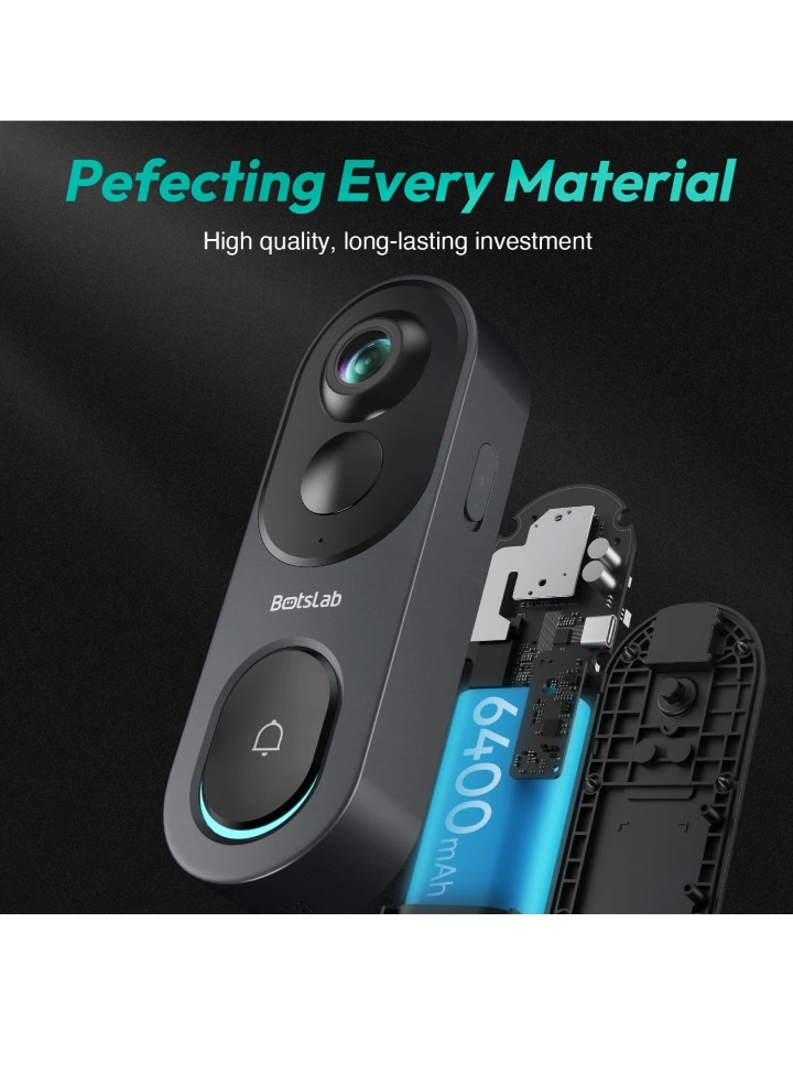 This wireless video doorbell features 5MP video, 32 GB of storage, and a 6400 mAh battery. It is compatible with both iOS and Android. The camera is weather-resistant and can be used indoors or outdoors. It features a two-way intercom system.