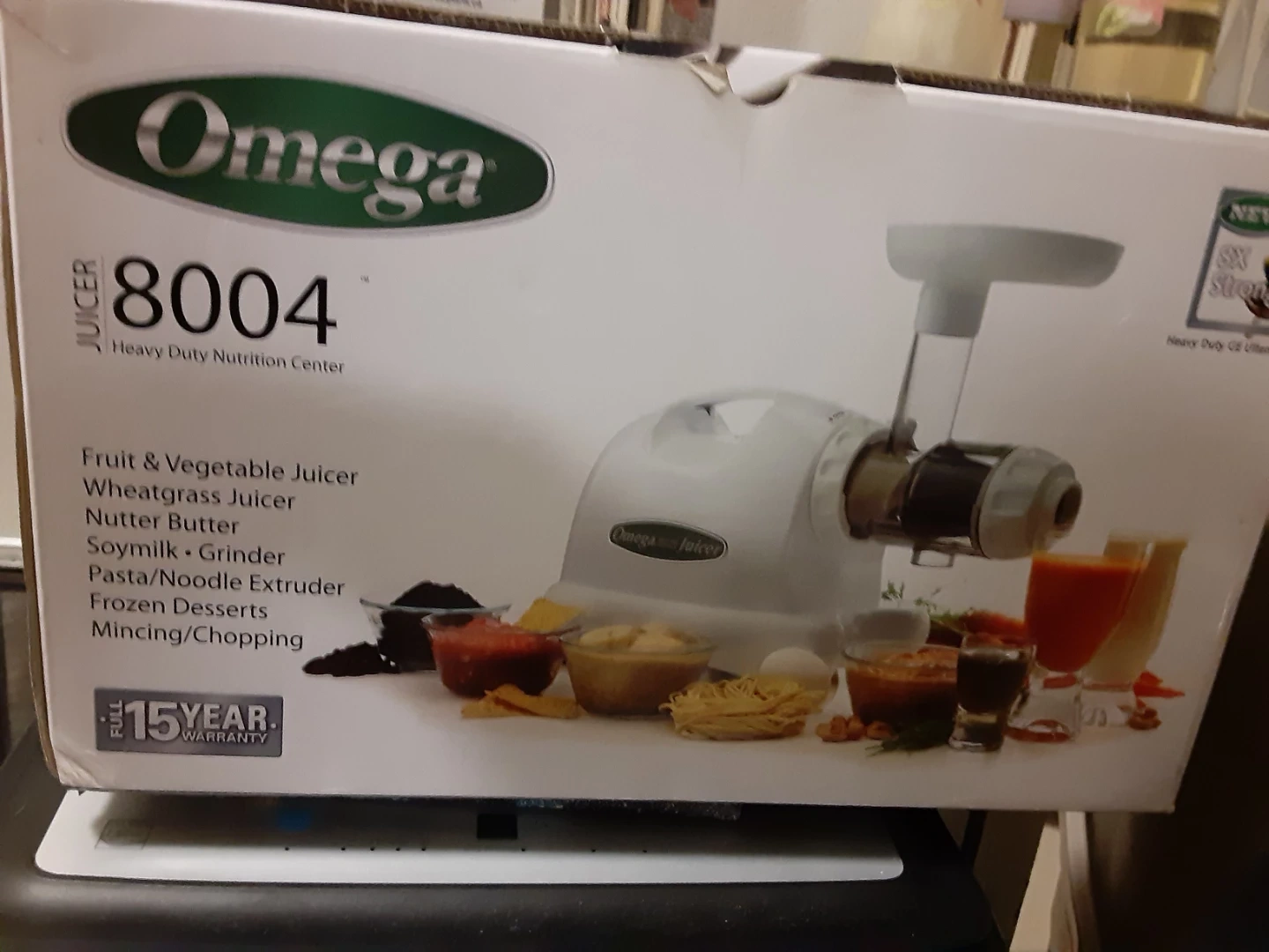 This Omega 8004 juicer is a heavy-duty nutrition center. It's capable of juicing fruits and vegetables, making wheatgrass juice, nutter butter, and soymilk. It can also be used as a grinder and for making pasta/noodle extruders, frozen desserts, and mincing/chopping.