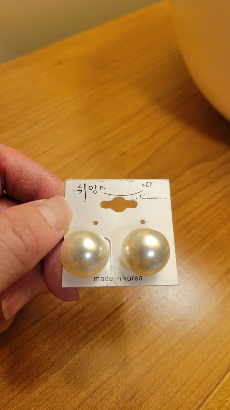 This earrings has a pair of faux pearl stud on one end and a pair of floral resin stud on the other end. Two different styles in one pair of earrings. It is made in Korea. They're perfect for adding a touch of elegance or a pop of colour to any outfit!