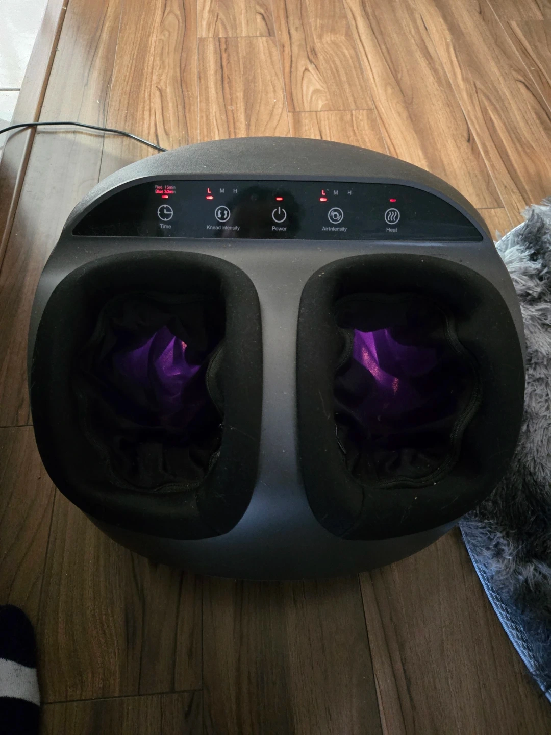 RENPHO Foot Massager, model RF-FM059R. Features adjustable massage intensity, air compression, and heat functions. Rated 12V, 30W. A great way to relax tired feet!