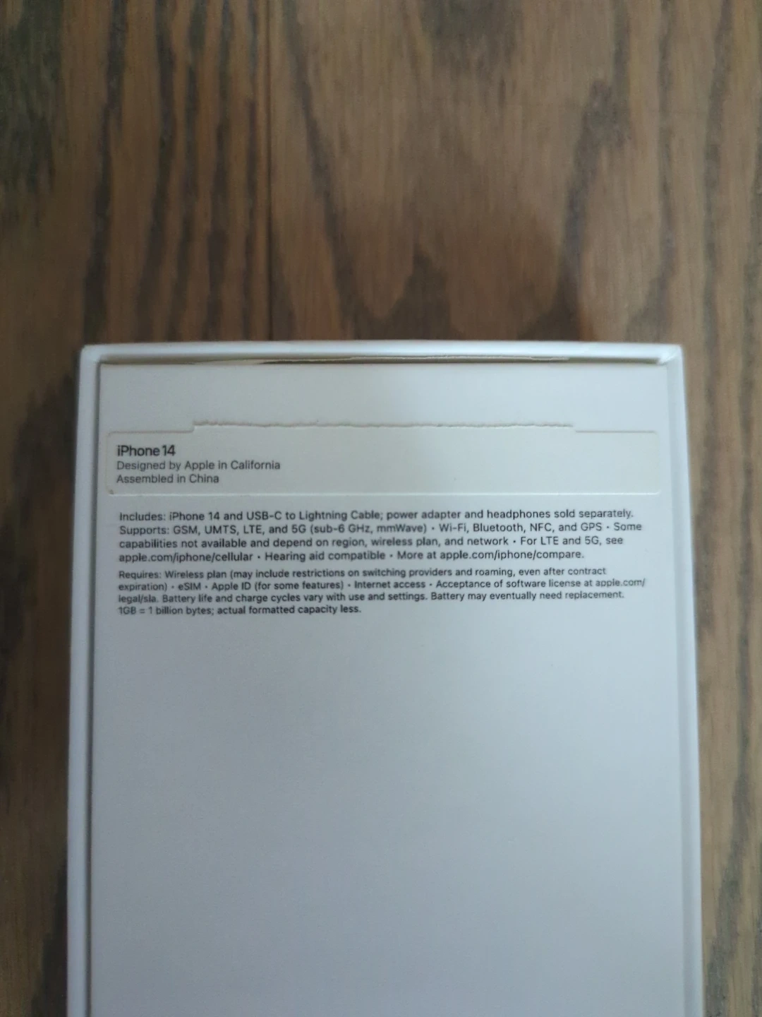 This is an Purple/ Lavender Apple iPhone 14 in its original box. Open box. Includes USB-A to Lightening cable.