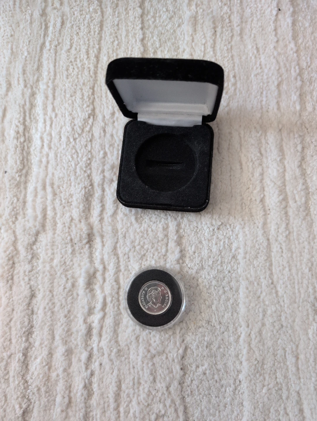 This is a commemorative coin presented in a black velvet-lined box. The coin features an image of the first oil derrick, it commerates Albertas 100 year Anniversary. It's a nice collectible piece. Someone might buy this for its historical or decorative value.