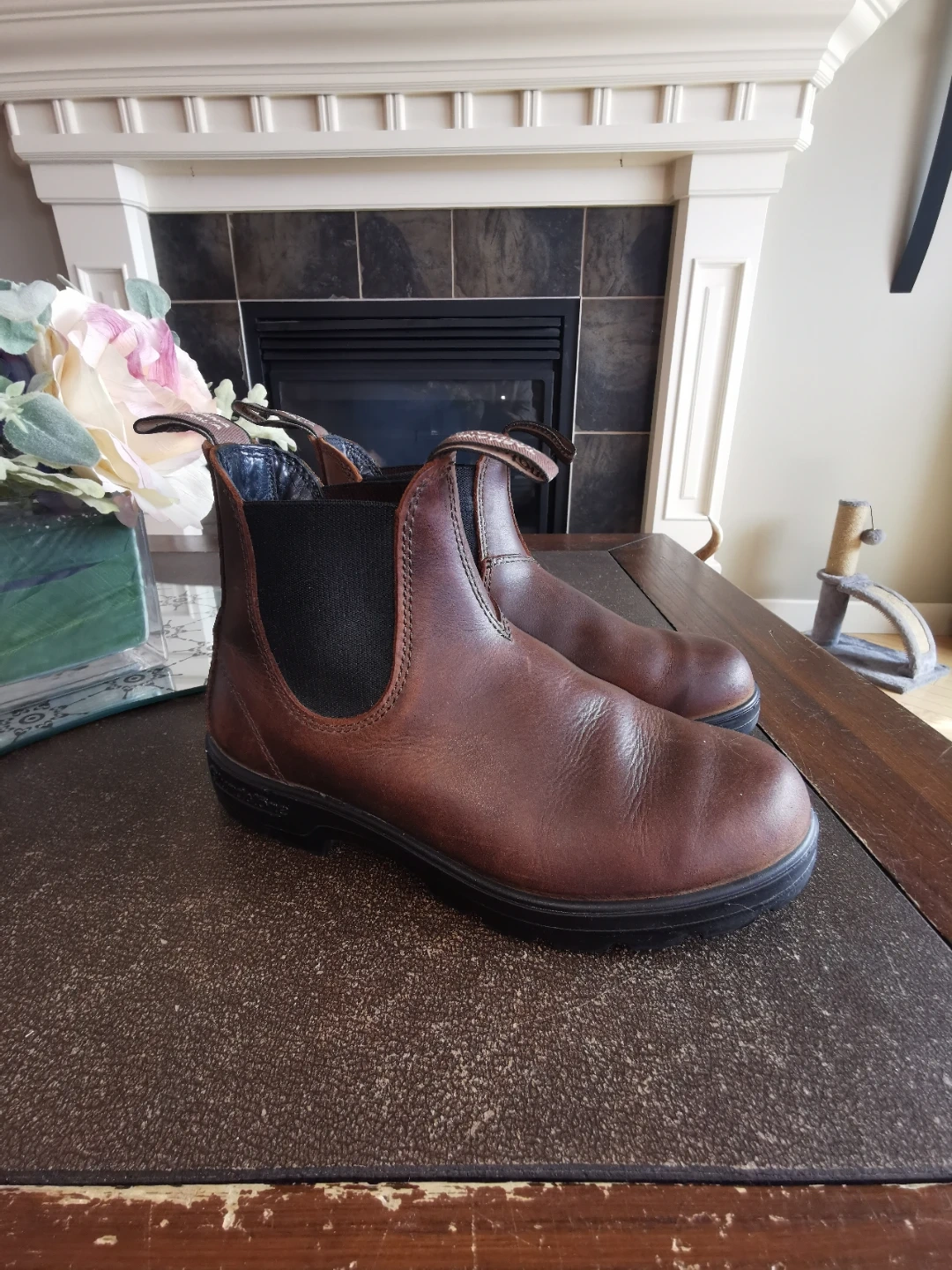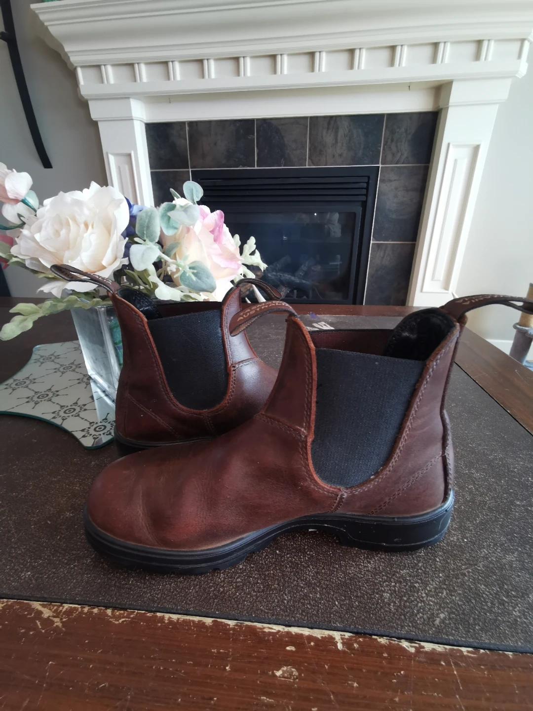 These classic Blundstone Chelsea boots are made with durable brown leather. They're perfect for everyday wear and feature elastic side panels for easy on and off.