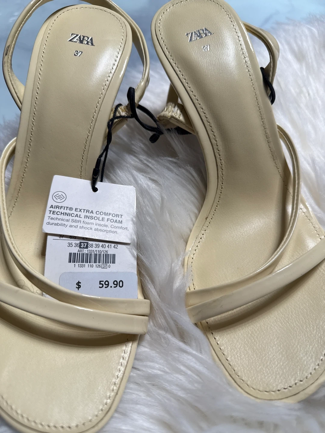 These Zara heeled sandals are in great condition and ready for a new owner! They feature a comfortable technical insole foam for extra comfort. The size is 37.