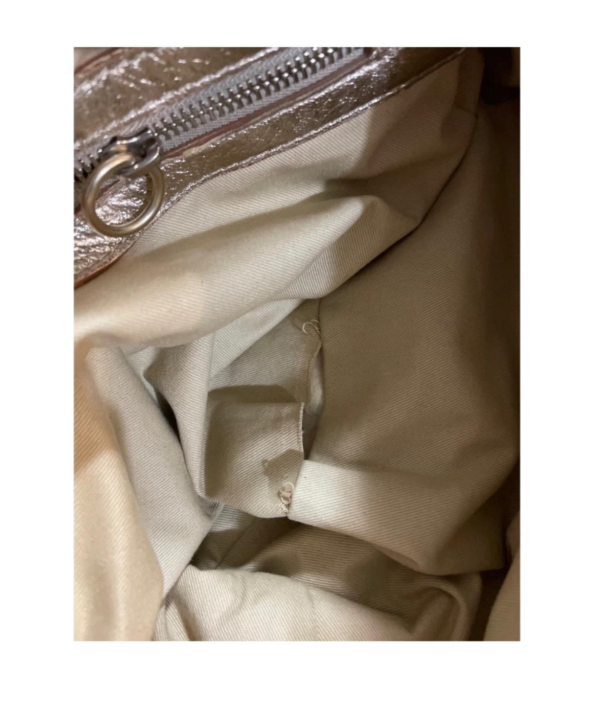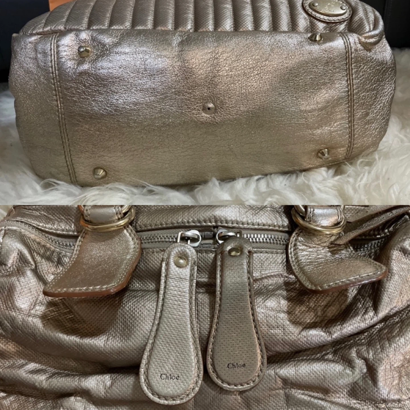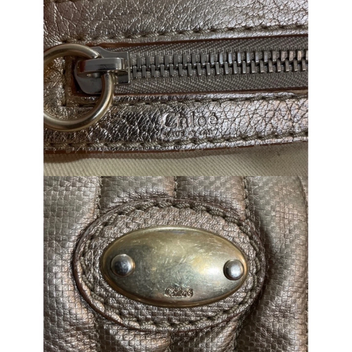 A classic Chloe Bay satchel in a metallic bronze colour. It's made from leather. This bag is spacious and perfect for everyday use. Some stain and tear in the interior. Pickup Cambie road Richmond